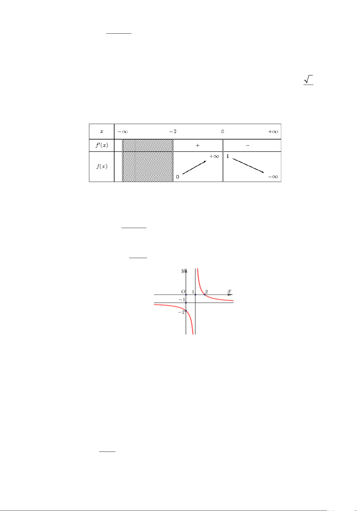 Câu 1. Đồ thị dưới đây là của hàm số nào? 2 2 A. x 4x 1 x 4x 5 y . B. y . x 2 x 2 2 2 C. x 4x 5 x 4x 5 y . D. y . x 2 x 2
