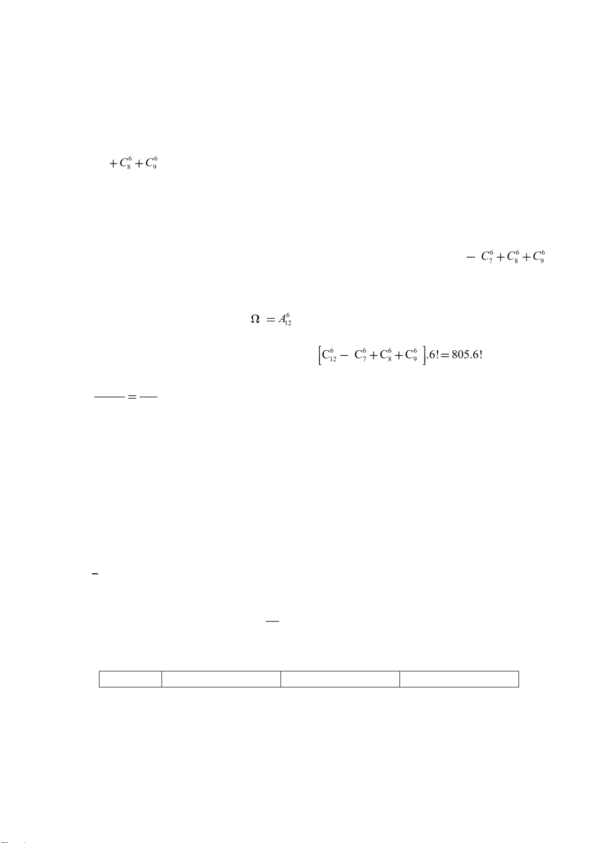 b) Số cách lấy ra 6 cuốn sách sao cho mỗi loại sách Toán, Vật lí, Hóa học đều còn lại ít nhất một cuốn là 6 A 6 6 6 C C C . 12 7 8 9