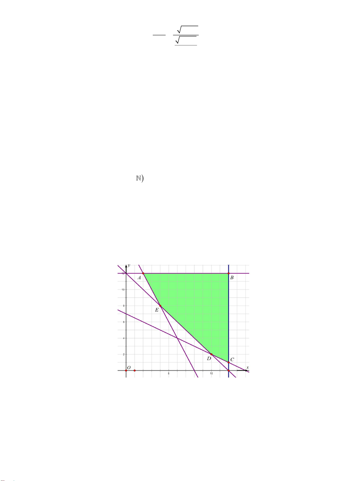 Miền nghiệm của hệ phương trình là miền ngũ giác ABCDE với A(2;12), B(12;12) , C (12; ) 1