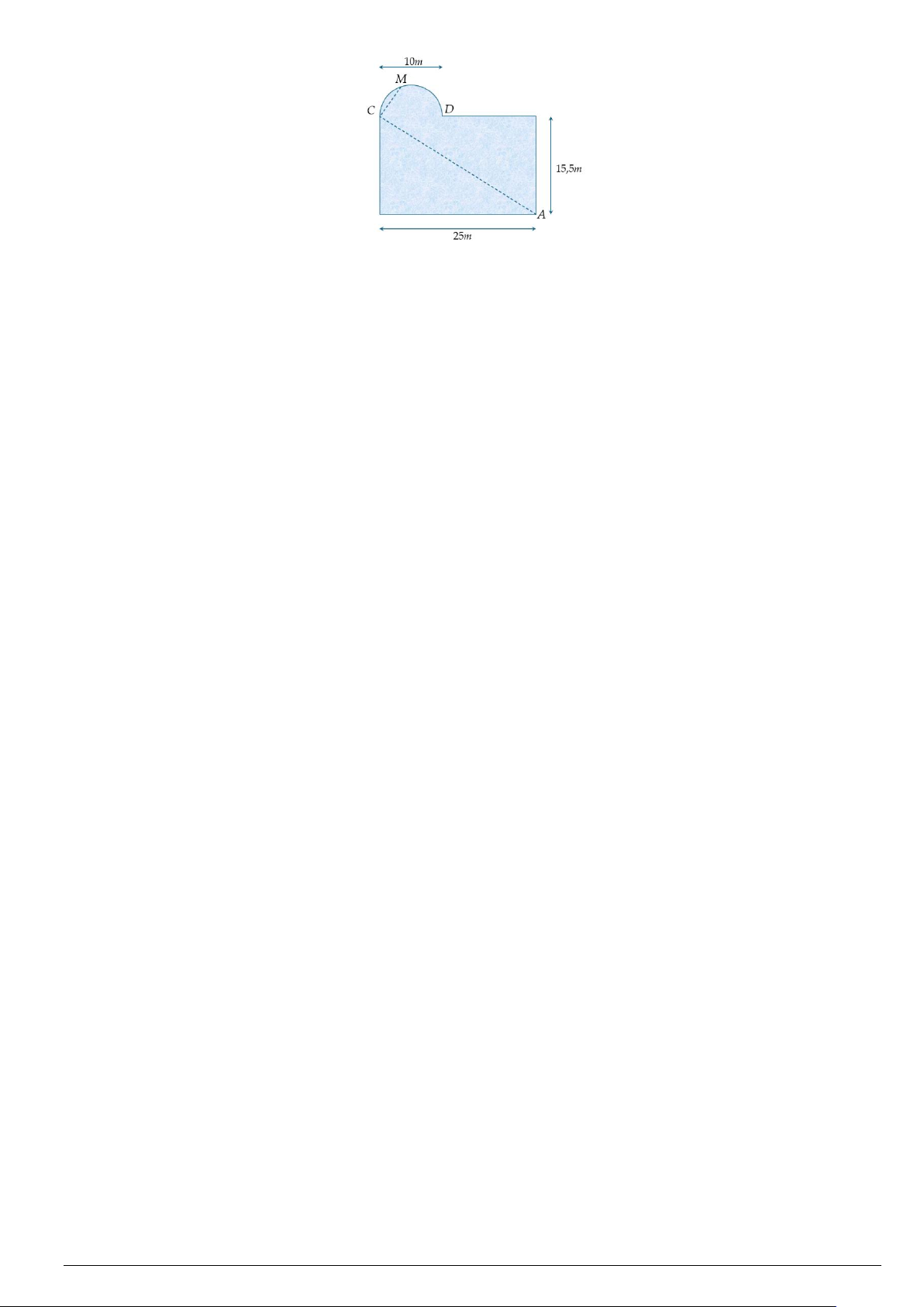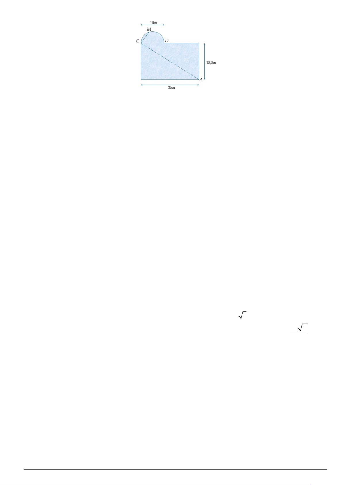 chiều dài 25 m, chiều rộng 15,5 m và bên cạnh đó là một hình bán nguyệt đường kính 10 m.