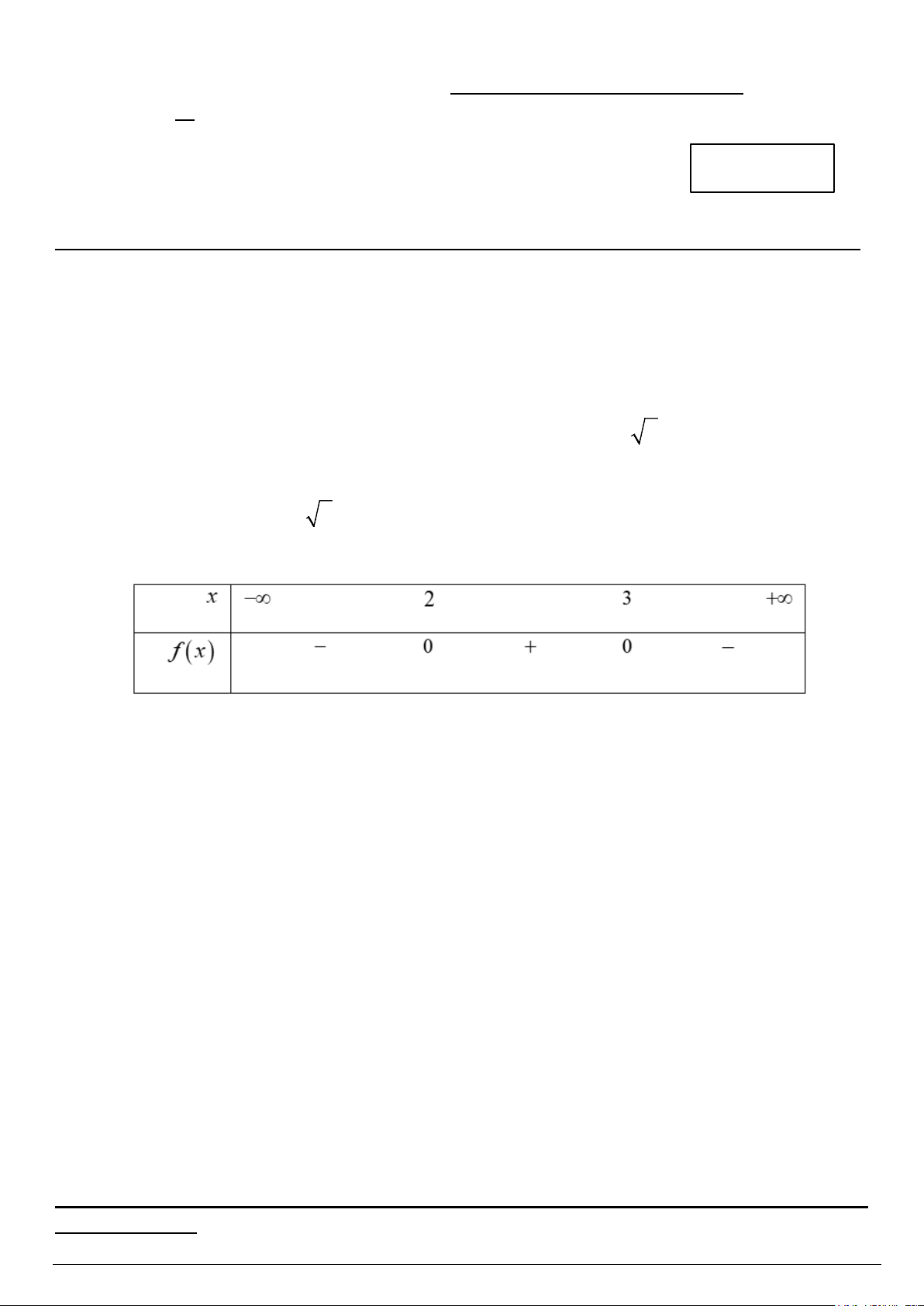 C. f (x) 0 khi x ;2 hoặc x 3;