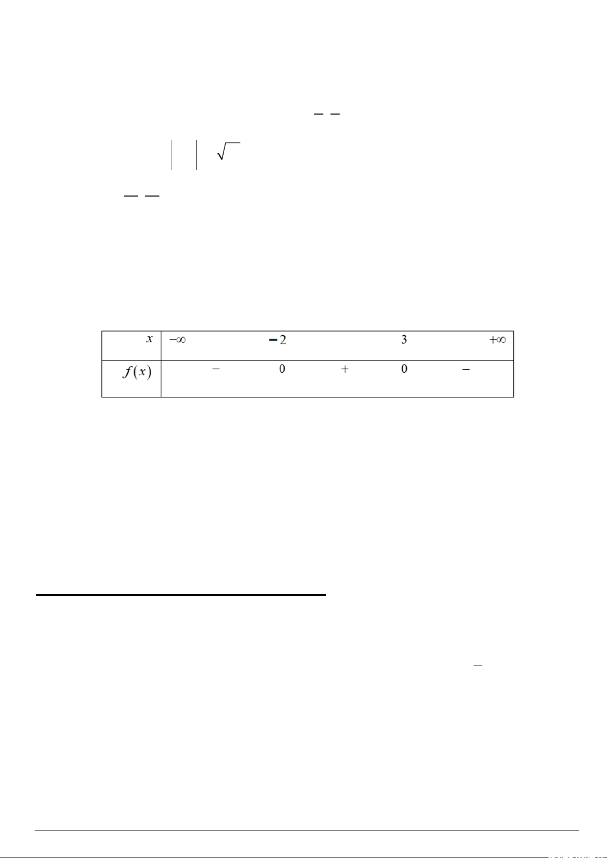 d) Tam thức bậc hai f (x)không âm khi và chỉ khi x ; 2 hoặc x 3;