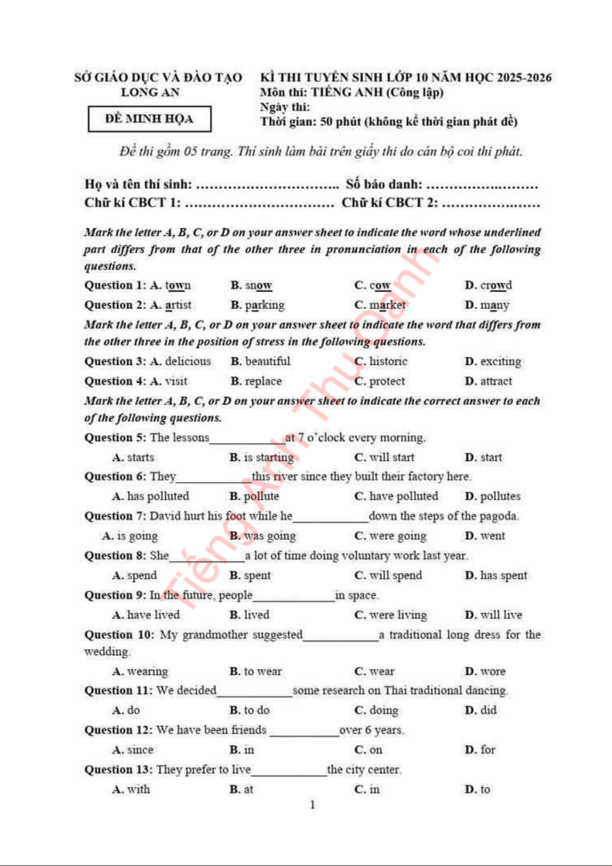 đề ôn thi vào 10
