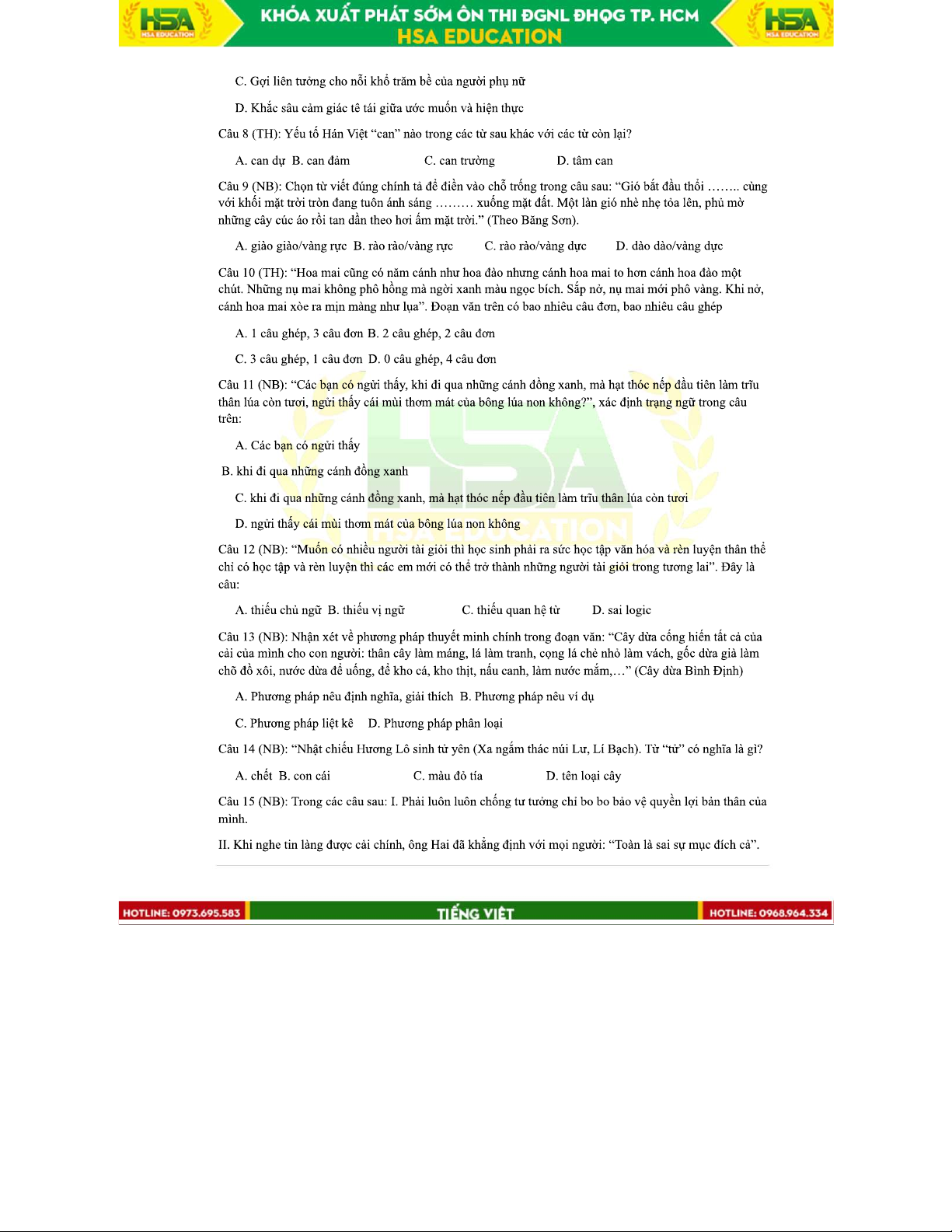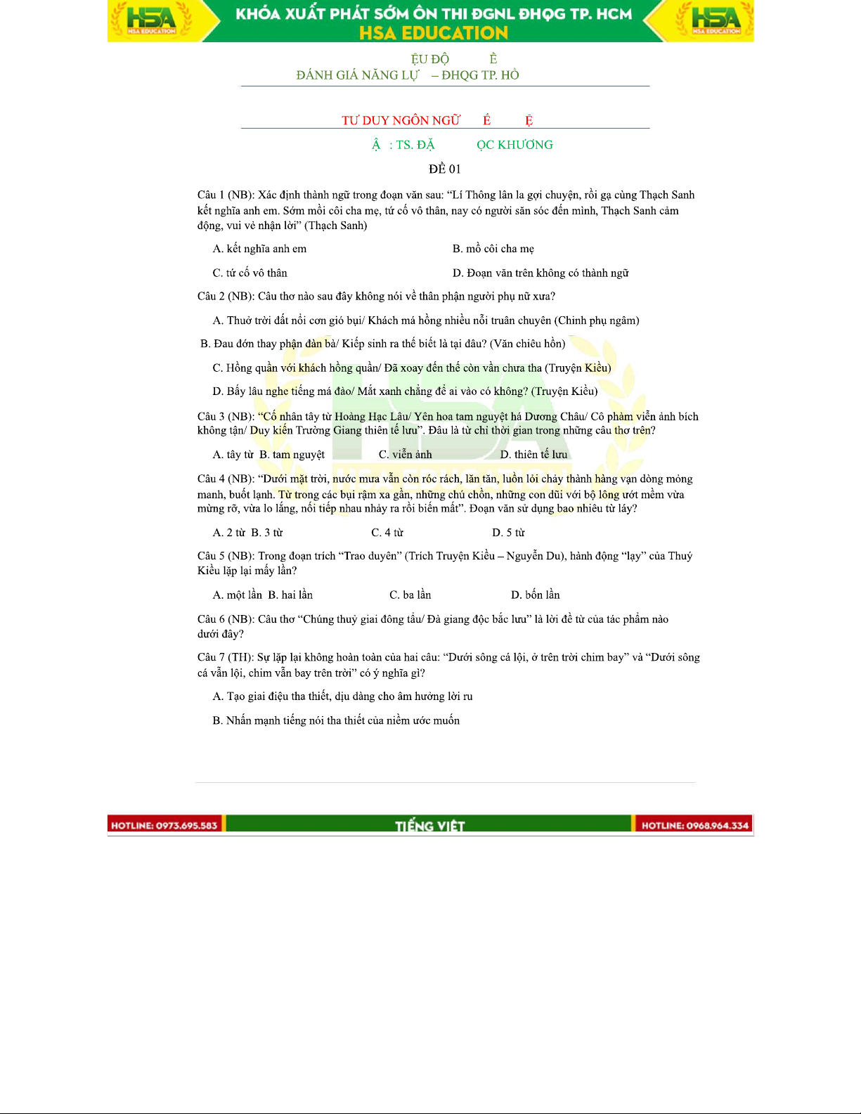 Đề luyện 01 - Đánh giá năng lực Tiếng Việt - ĐHQG TP.HCM