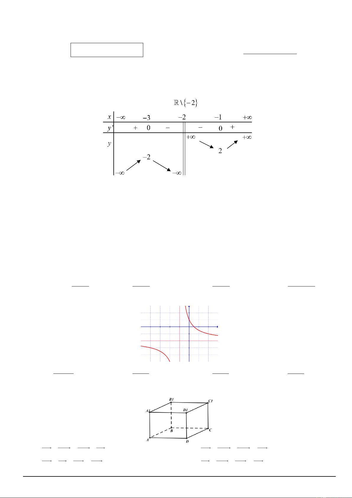 Câu 4. Đồ thị hình bên là của hàm số: y 2 1 x -4 -3 -2 -1 1 2 -1 -2 -3 -4 2 3 − 2x 2x +1 1− 2x 1− 2x A. y = B. y = C. y = D. y = x +1 x +1 1− x x +1