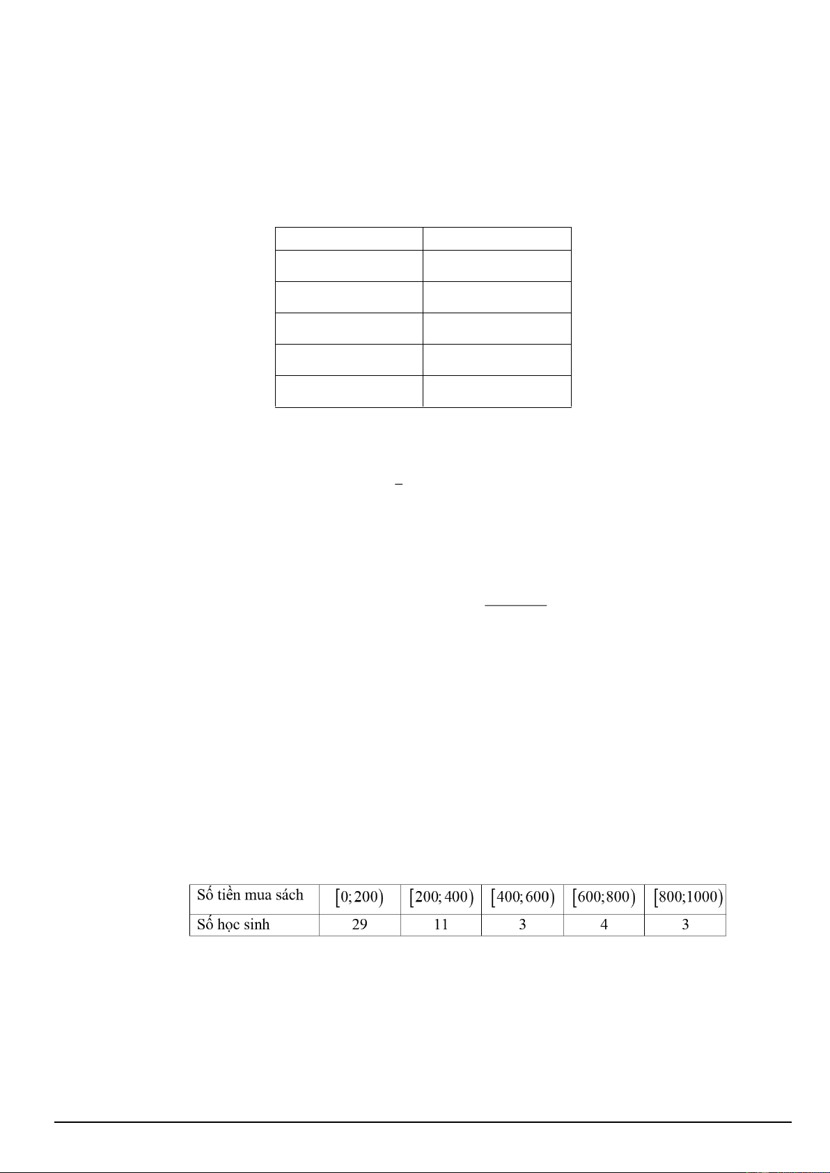 Câu 4. Điều tra về số tiền mua sách (đơn vị: nghìn đồng) trong một năm của 50 học sinh trong một trường