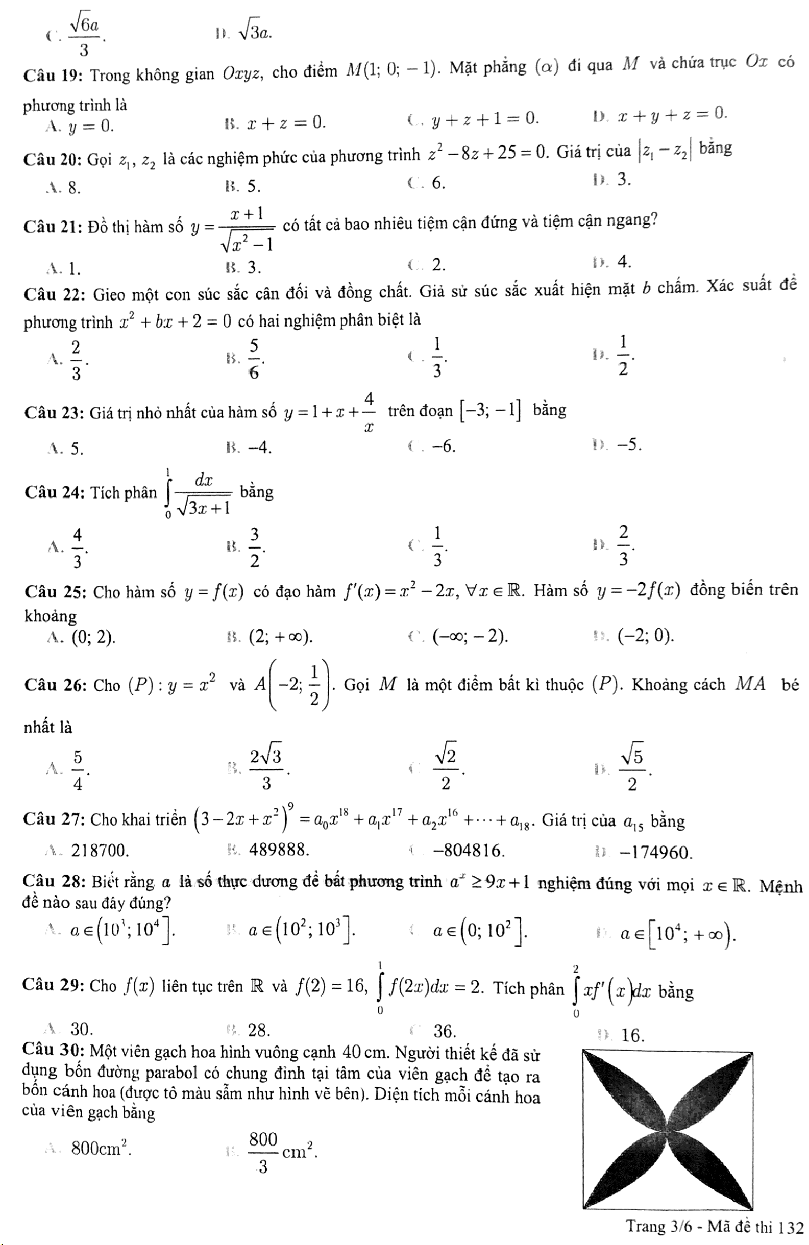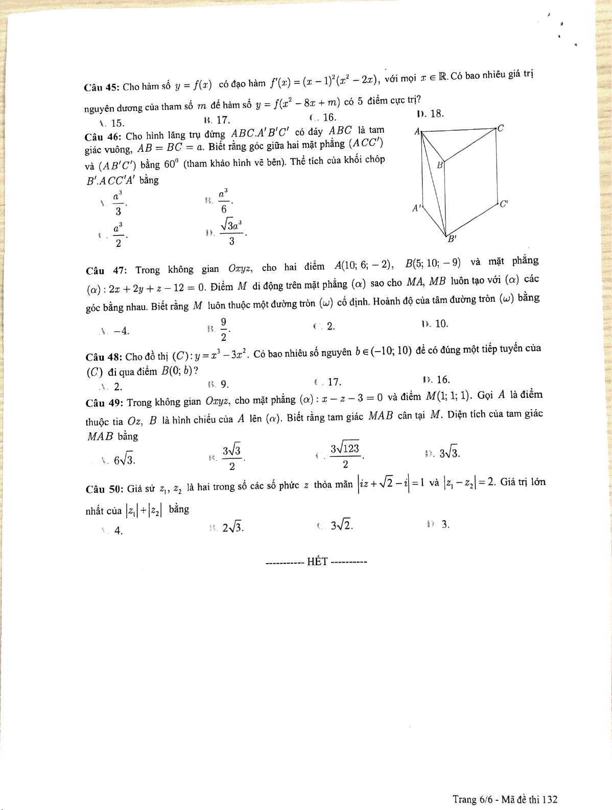 Đề luyện thêm số 6 ôn thi THPT quốc gia | Môn Toán