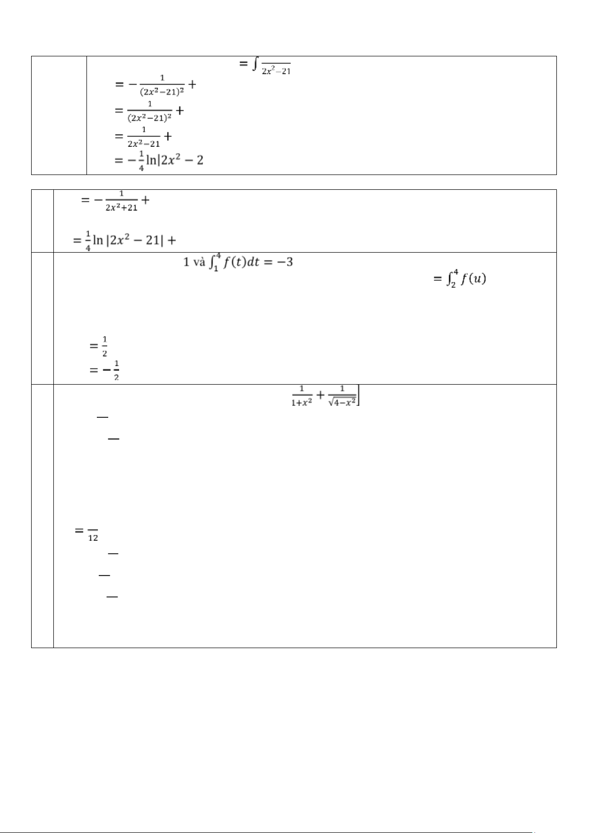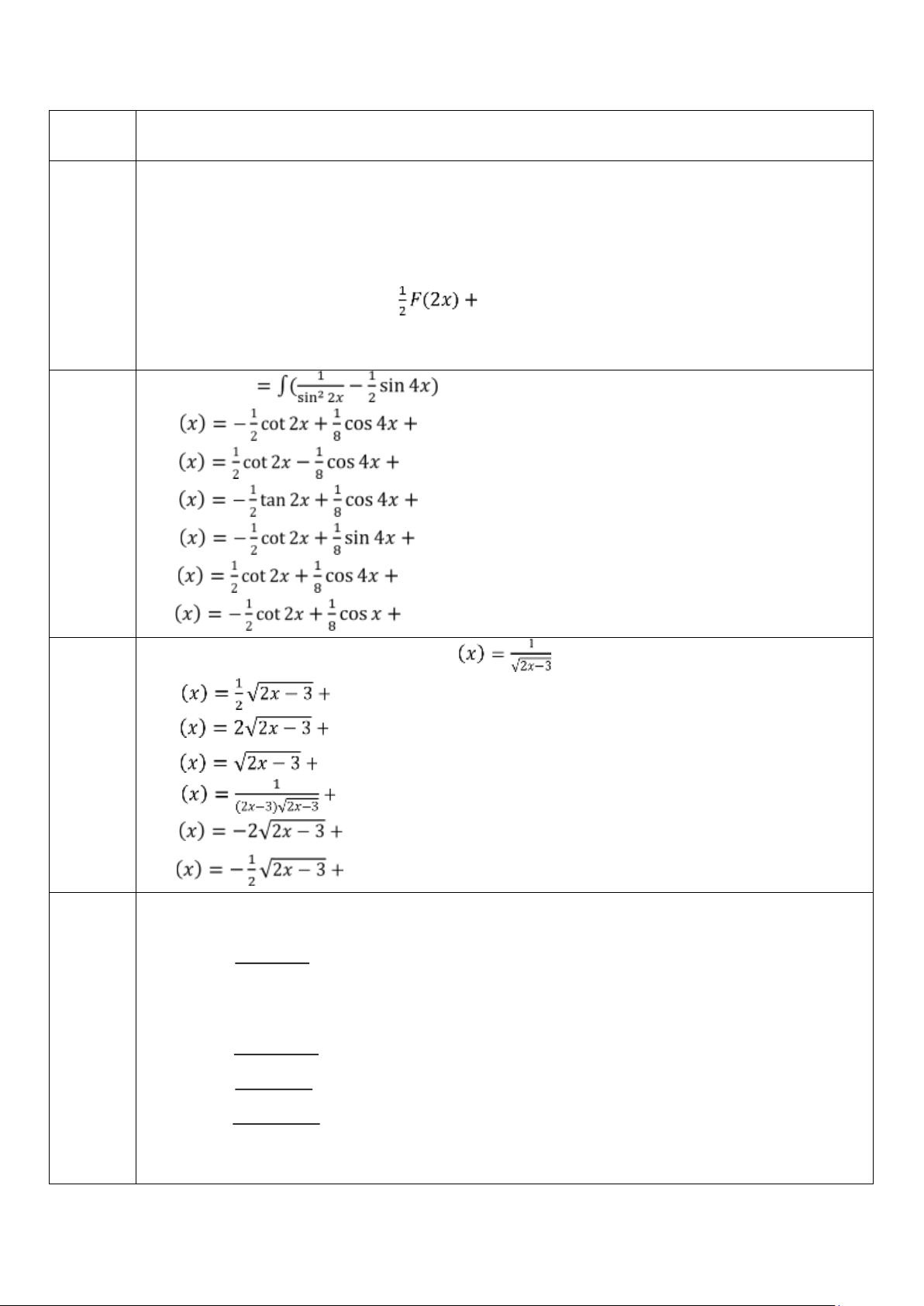 Câu 1: Cho các hàm 𝑓(𝑥) và 𝐹(𝑥) xác định trên (𝑎, 𝑏) và 𝐹′(𝑥) = 𝑓(𝑥) với mọi 𝑥 ∈ (𝑎, 𝑏).