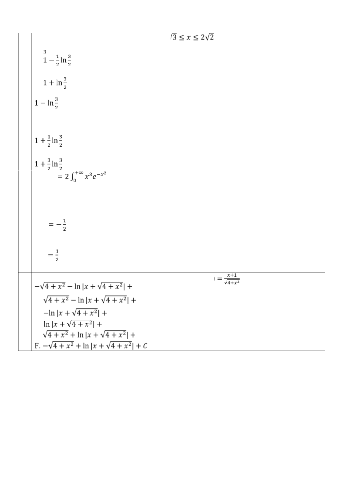 F. 𝑓(𝑥) có họ nguyên hàm là 𝐹(𝑥) + 𝐶, 𝐶 là hằng số tùy ý. 𝑑𝑥 Câu 2: Tính 𝐼 𝐶 A. 𝑓 𝐶 B. 𝑓 𝐶 C. 𝑓 𝐶 D. 𝑓 𝐶 E. 𝑓 𝐶 F. 𝑓 Câu 3: Tìm hàm các 𝐹 (𝑥) biết 𝐹′ 𝐶 A. 𝐹 B. 𝐹 𝐶 C. 𝐹 𝐶 𝐶 D. 𝐹 E. 𝐹 𝐶 𝐶 F. 𝐹