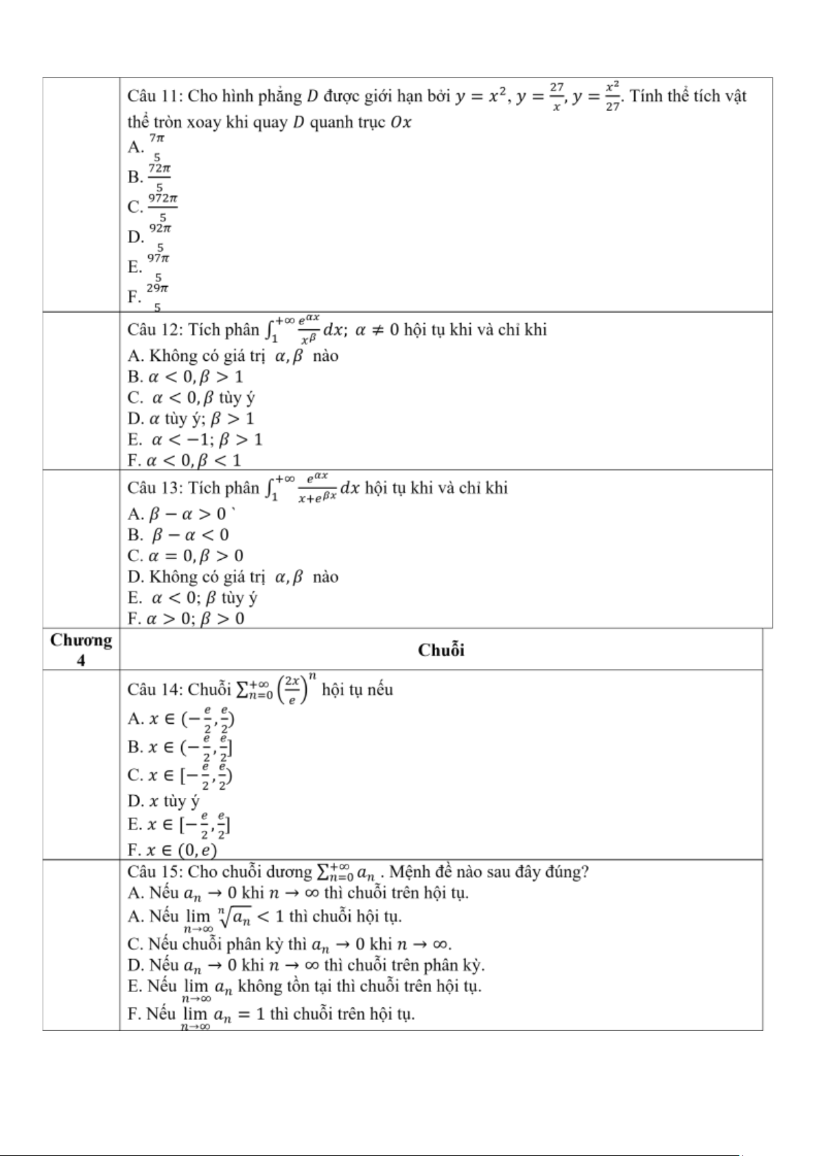F. Chuỗi trên hội tụ khi và chỉ khi 2 < 𝛼 < 4 lOMoAR cPSD| 58833082
