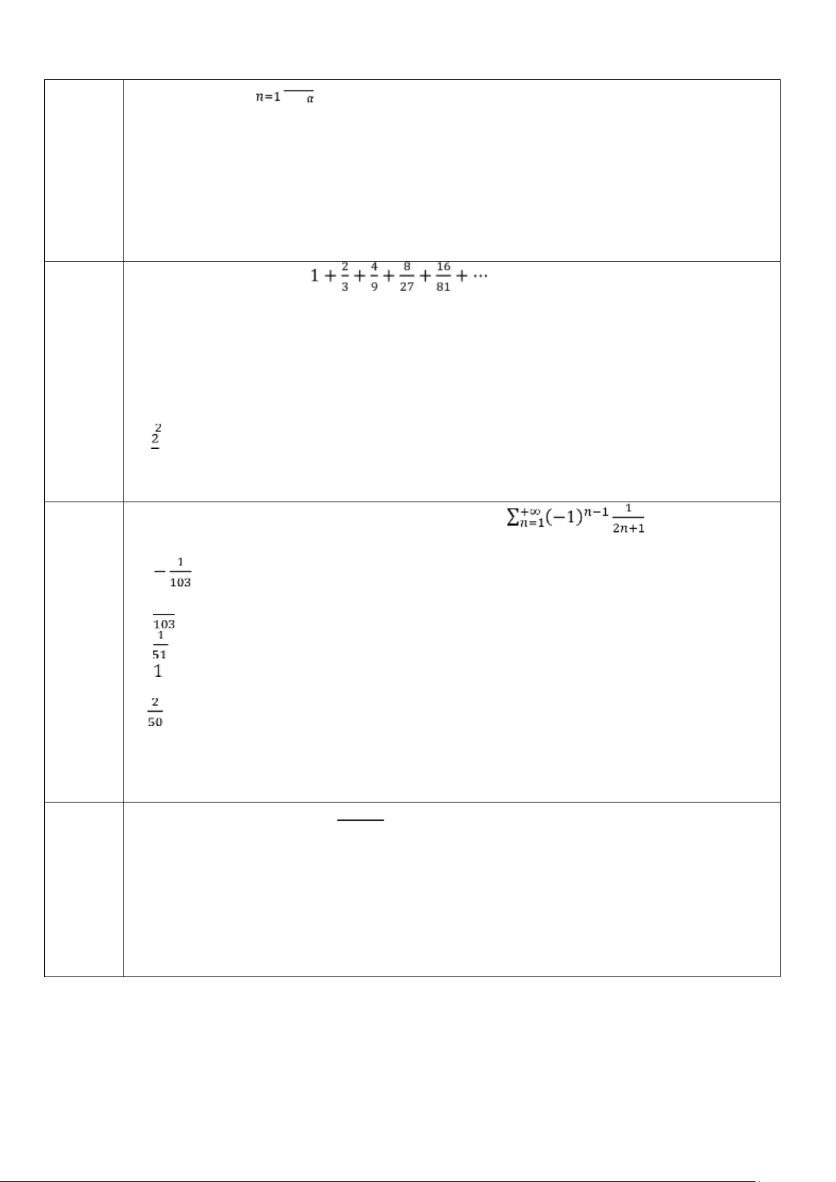 Câu 20: Chuỗi ∑+𝑛=∞1 ( 2𝑛−1)1(2𝑛+1) có