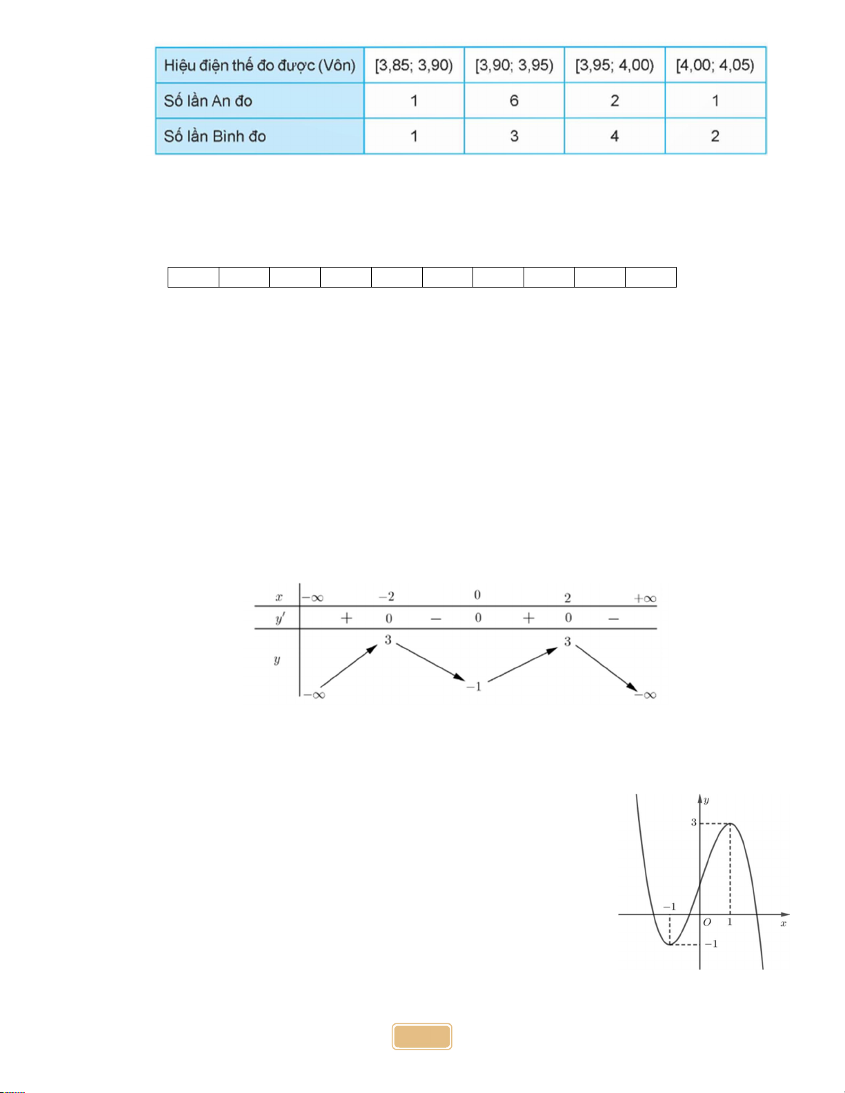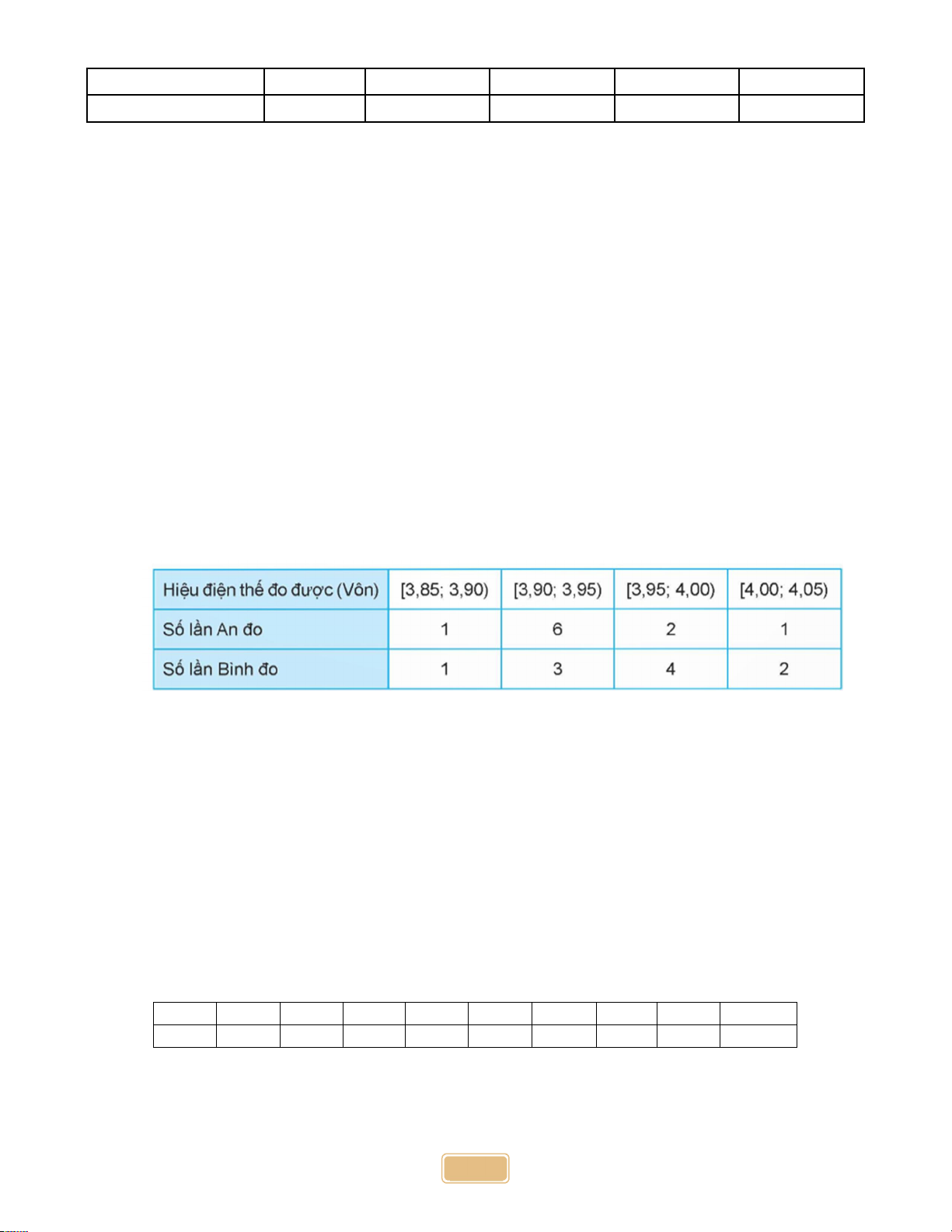 lần của hiệu số độ lệch chuẩn của các mẫu số liệu ghép nhóm kết quả đo của Bình và của An là  bao nhiêu?  Câu 4: