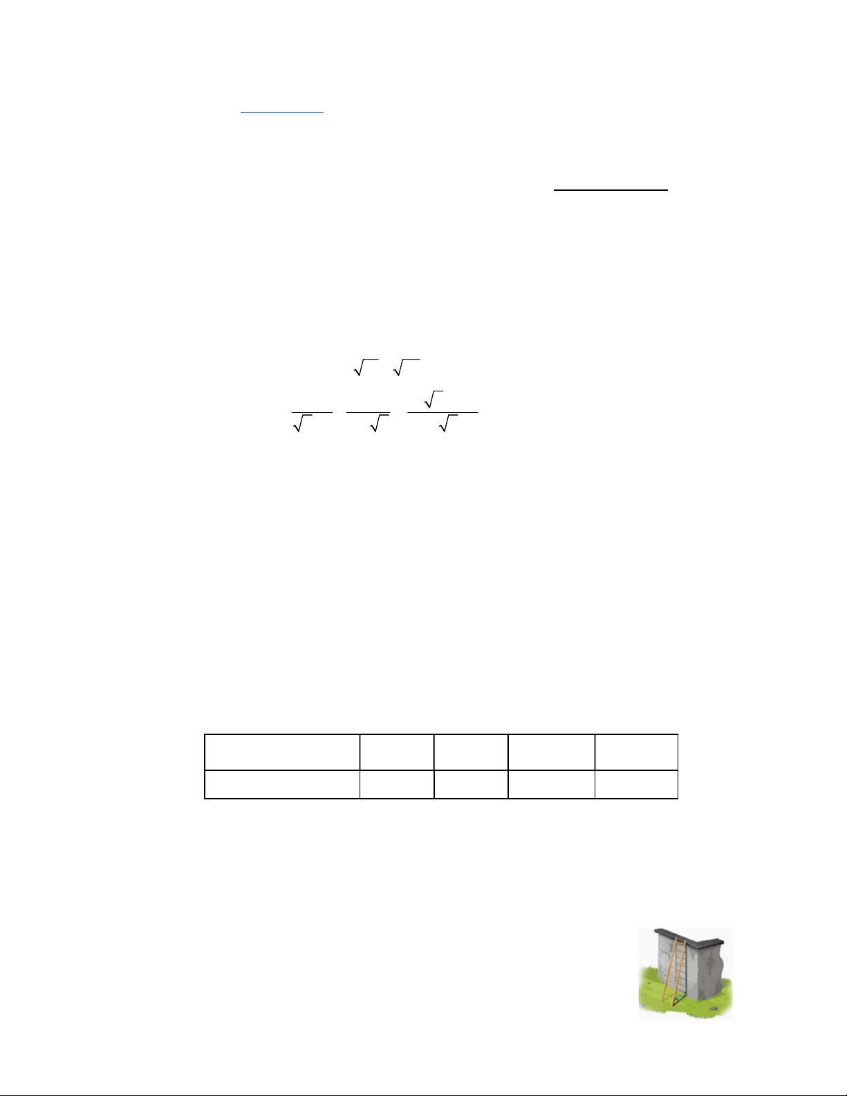 1) Đặt cái thang dài 4 mét sao cho đầu thang tựa vào tường, chân thang và