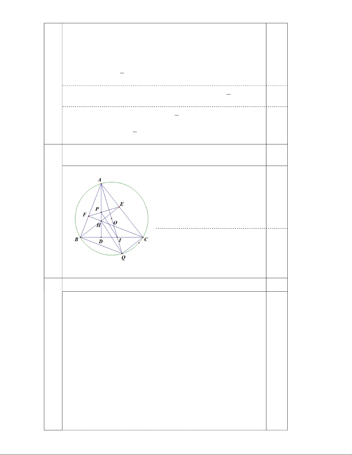 2) Kẻ đường kính AQ của đường tròn O cắt cạnh BC tại I . Gọi P là giao điểm của AH và EF. Chứng minh BAD CAQ . 3) Chứng minh rằng A EP đồng dạng với A BI và PI HQ . -- HẾT --