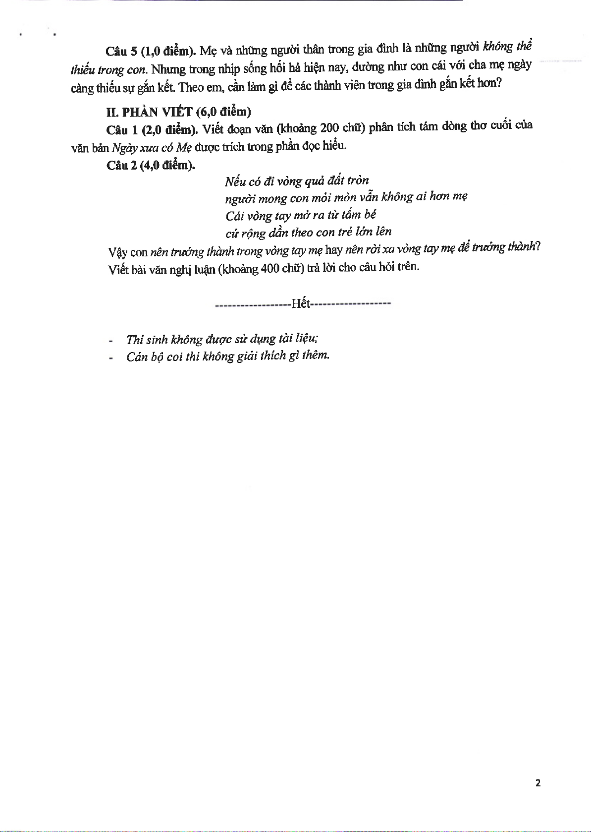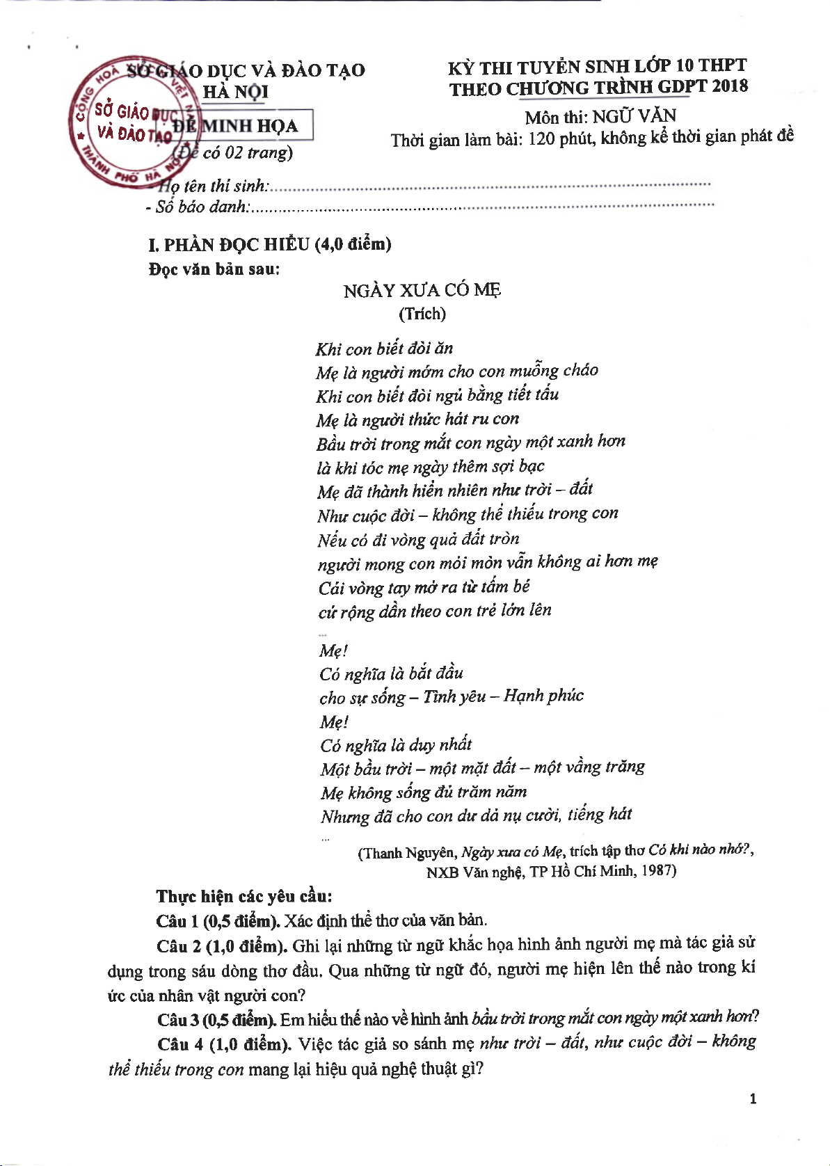Đề Minh họa tuyển sinh 10 môn Ngữ Văn | Sở Giáo dục và Đào tạo Hà Nội