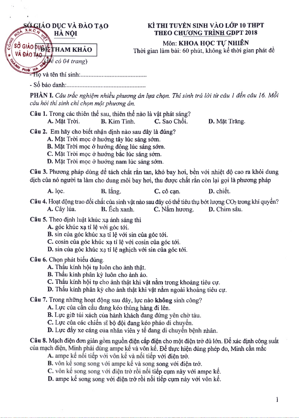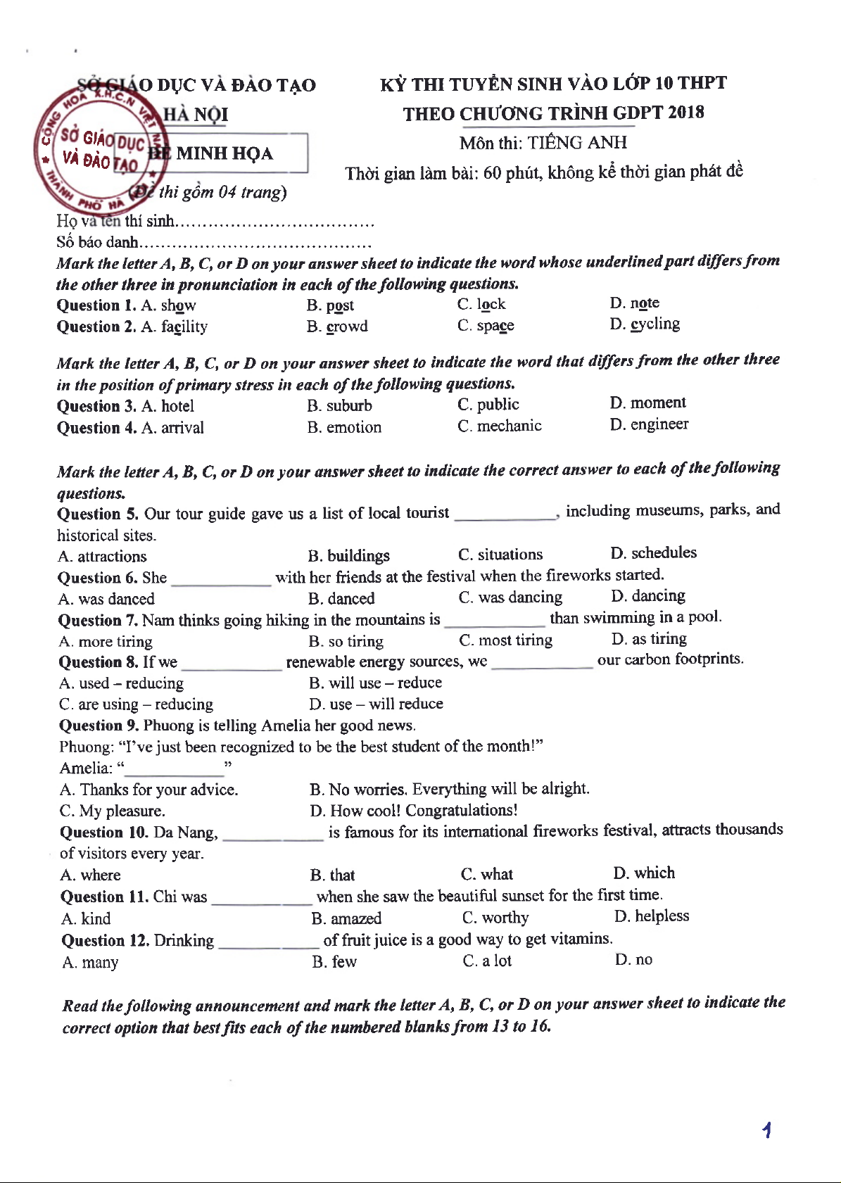 Đề Minh họa tuyển sinh 10 môn Ngữ Văn | Sở Giáo dục và Đào tạo Hà Nội. Tài liệu giúp bạn tham khảo, ôn tập và đạt kết quả cao. Mời đọc đón xem!