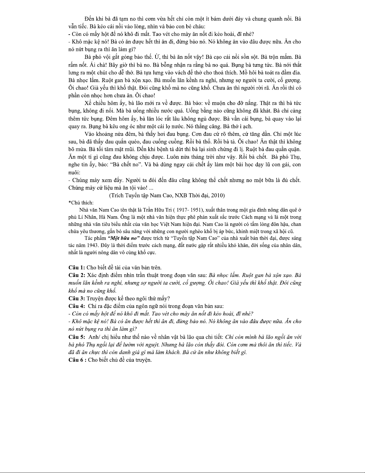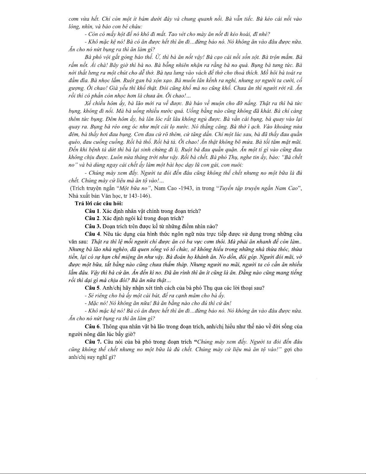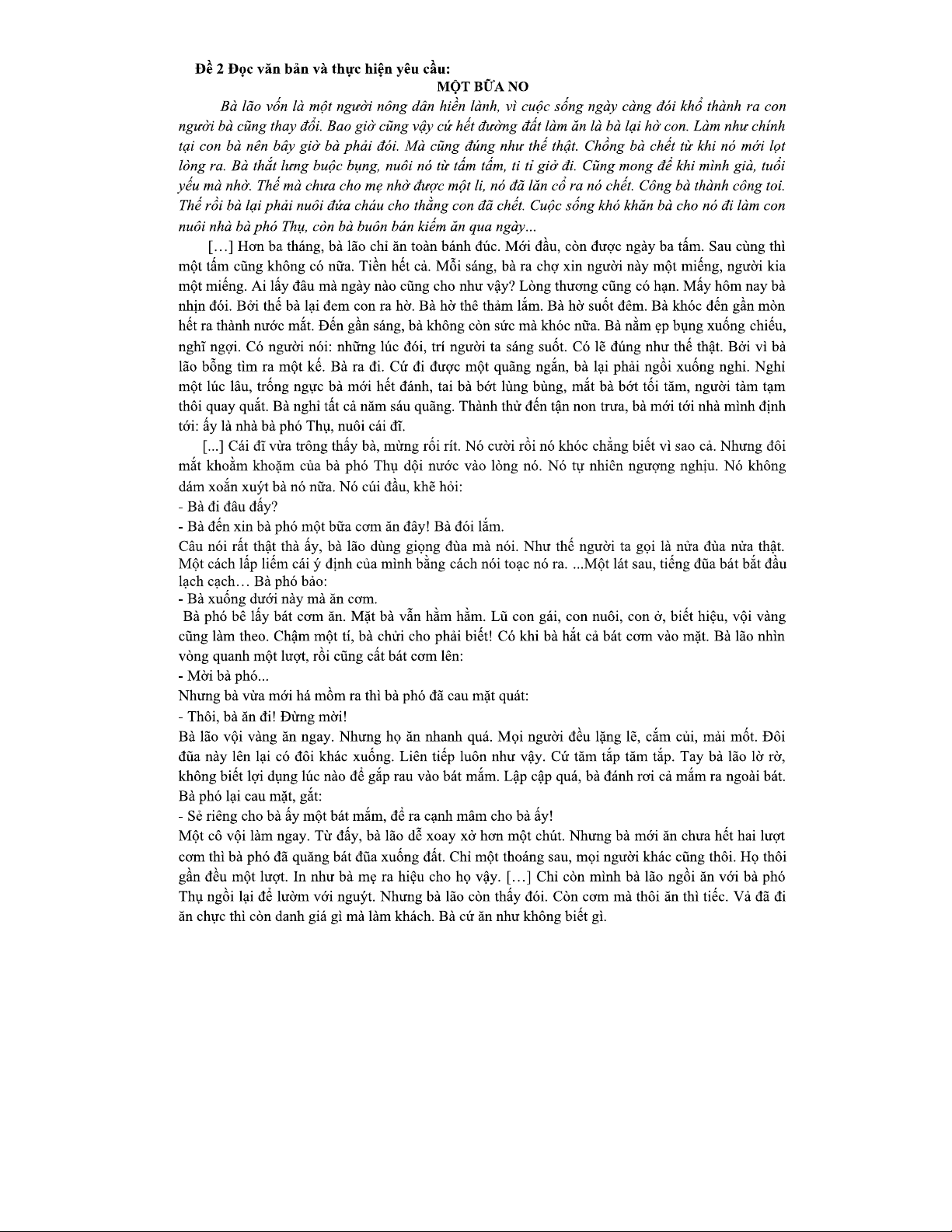 Đề NV11 2025 - Truyện ngắn "Một Bữa No" - Phân tích & Thảo luận