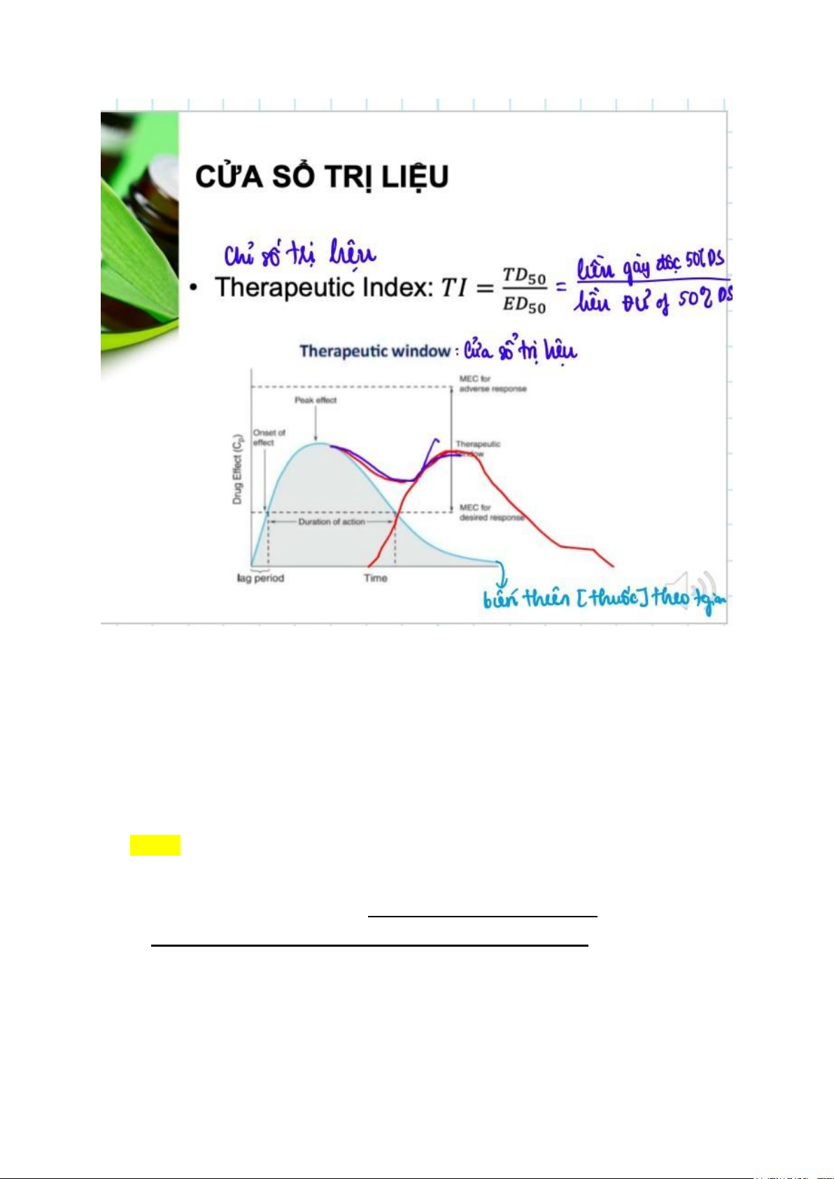 Chỉ số trị liệu là:(1 Điểm) lOMoAR cPSD| 47206521 LD50/tổng dân số ED50/tổng dân số ED50/LD50 ED50 50% ĐÁP ỨNG/ 50% CHẾT lOMoAR cPSD| 47206521 12.