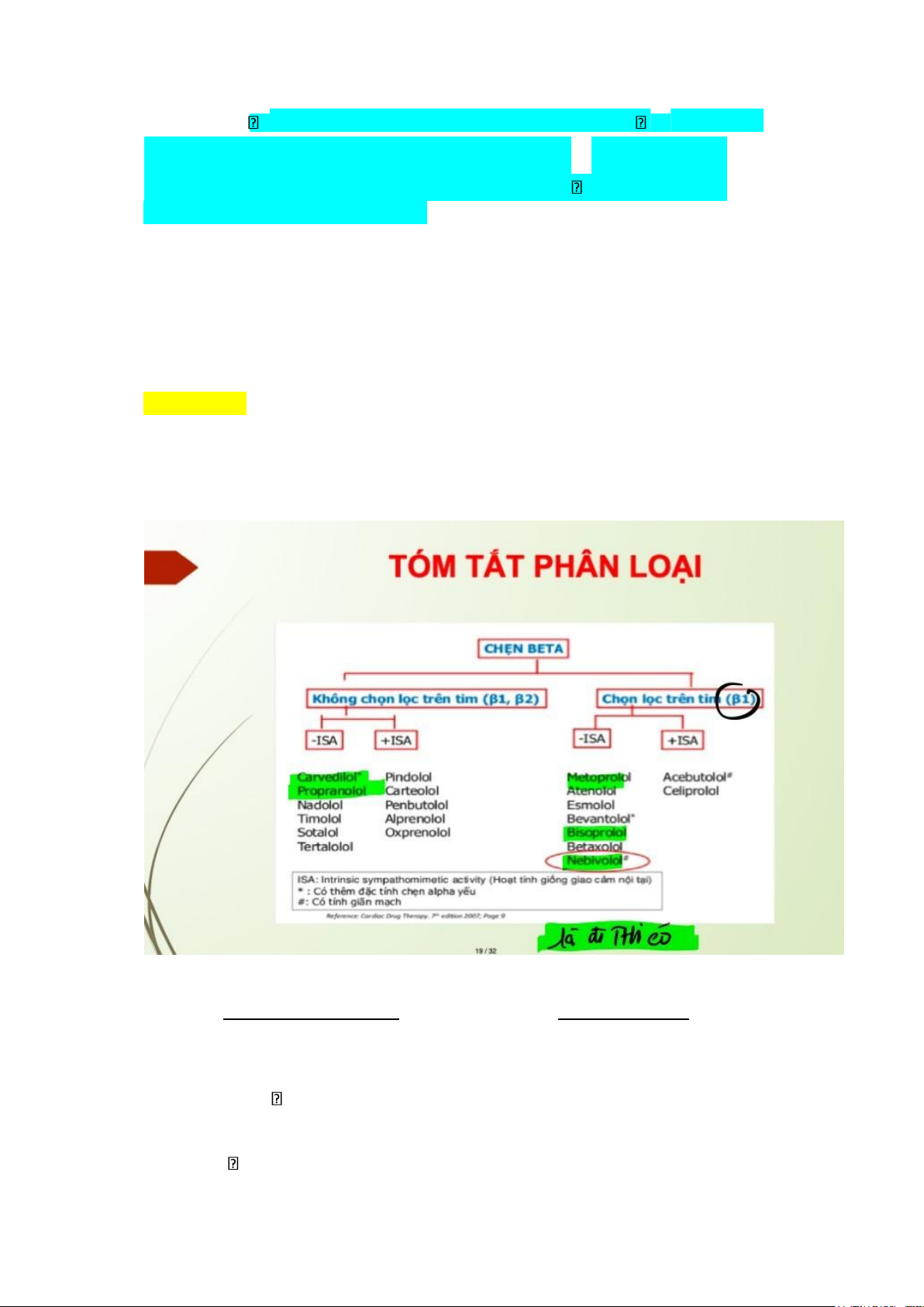 Thuốc nào sau đây có khả năng vừa ức chế thụ thể β1 vừa ức chế thụ thể β2?(1 Điểm) Propranolol Bisoprolol Nebivolol Metoprolol 18.