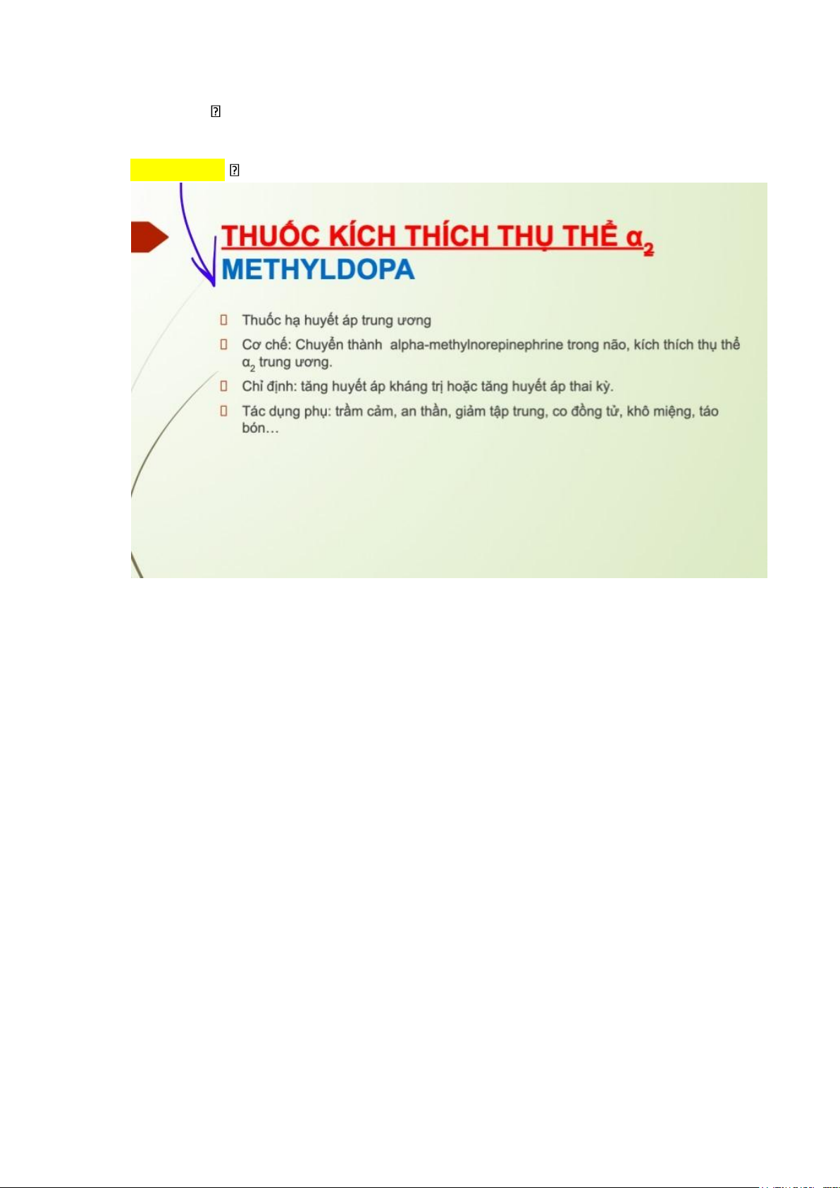 Methyldopa KÍCH THÍCH ALPHA 2 = THUỐC LIỆT GC 19.