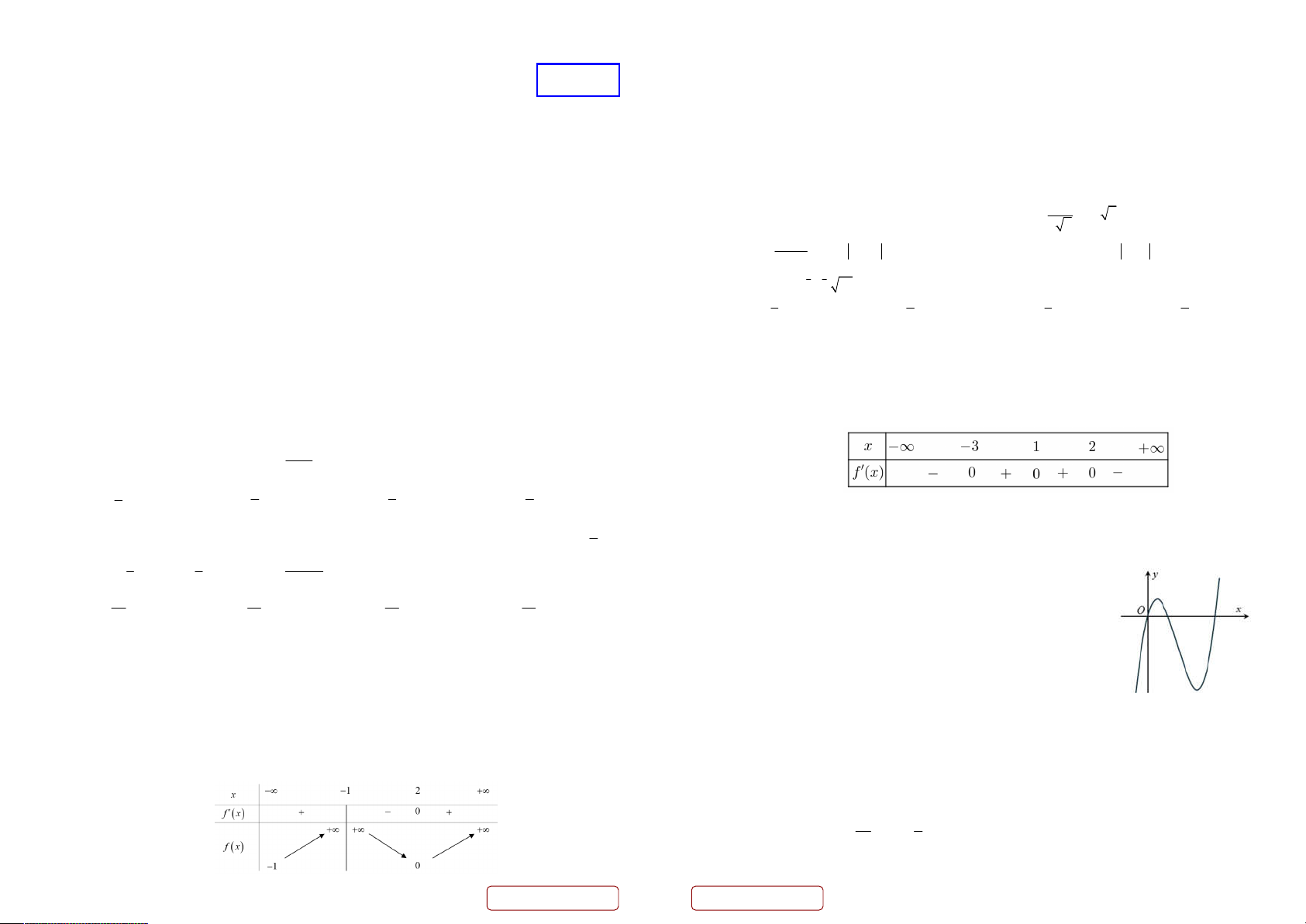 Số điểm cực trị của hàm số y f x là A. 7 . B. 3 . C. 5 . D. 6 . 2 A. 0. B. 1. C. 2. D. 3.
