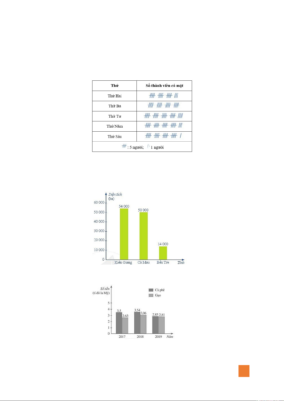 Bài 1. Một câu lạc bộ có 24 thành viên. Người phụ trách thống kê những thành viên có mặt tại câu lạc bộ trong một tuần như ở bảng bên.