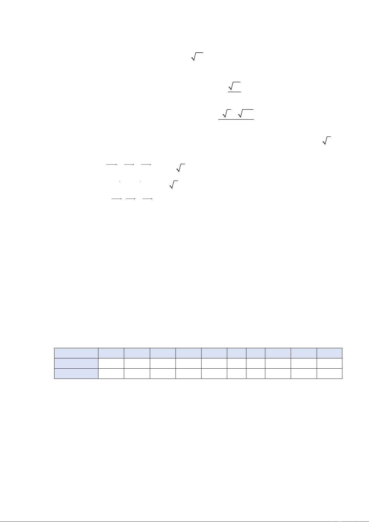 Câu 11: Thống kê điểm kiểm tra môn toán (thang điểm 10) của một nhóm gồm 6 học sinh ta có bảng số liệu sau: Tên học sinh Kim Sơn Ninh Bình Việt Nam Điểm 9 8 7 10 8 9