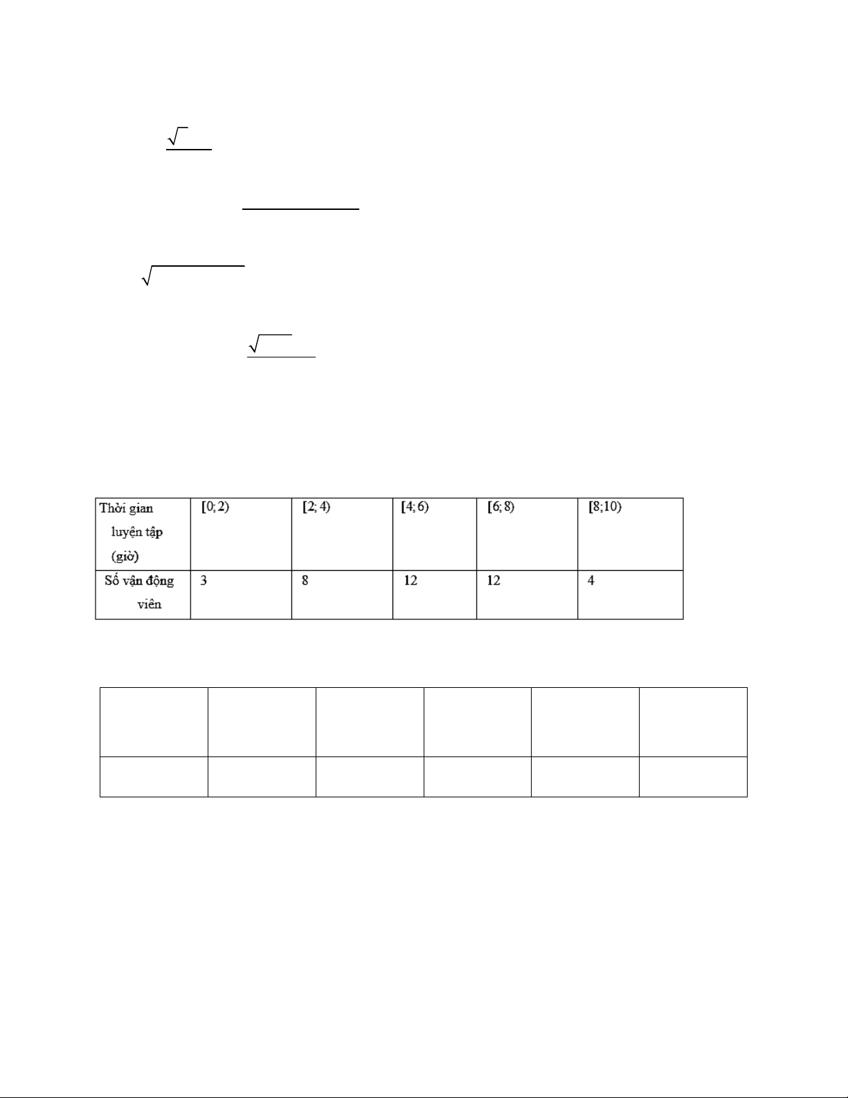 Câu 2.Một hãng xe ô tô thống kê lại số lần gặp sự cố về động cơ của 100 chiếc xe cùng loại sau 2 năm sử dụng đầu tiên ở bảng sau: Số lần gặp sự cố [1; 2] [3; 4] [5;6] [7;8] [9;10] Số xe 17 33 25 20 5