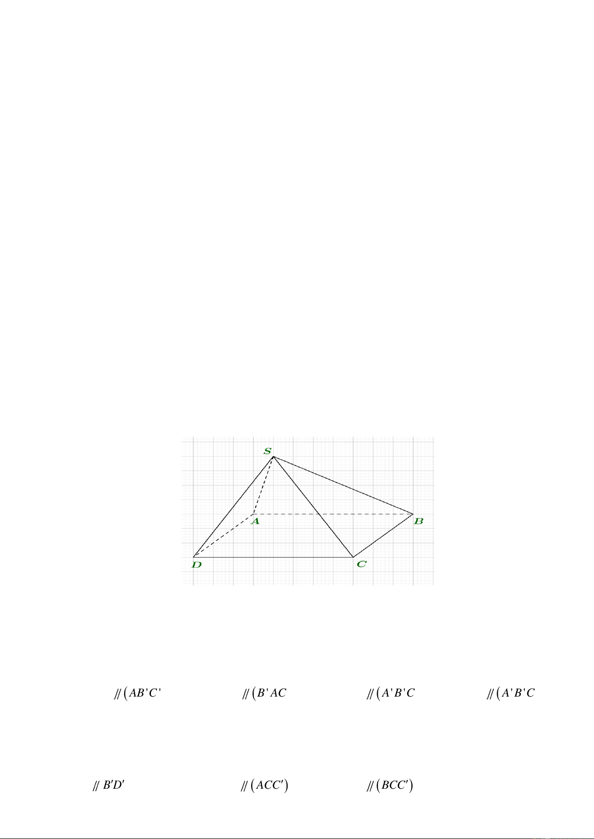 Câu 18: Cho hình chóp S.ABCD có đáy ABCD là hình bình hành như hình vẽ.