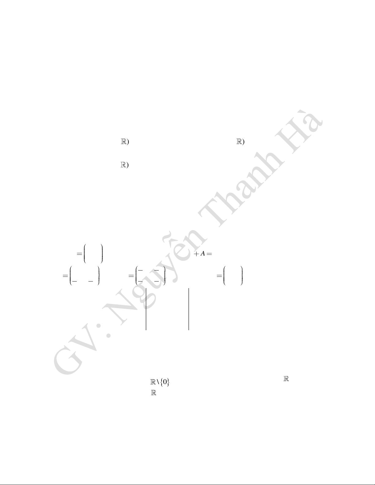 18. Cho A là ma trận vuông cấp 3 có detA = 3. Định thức của ma trận 2A là : A) 6 B) 24 C) 54 D) –6 1 − 1 1 1 1 1 − 1 1 19. Cho ma trận A =