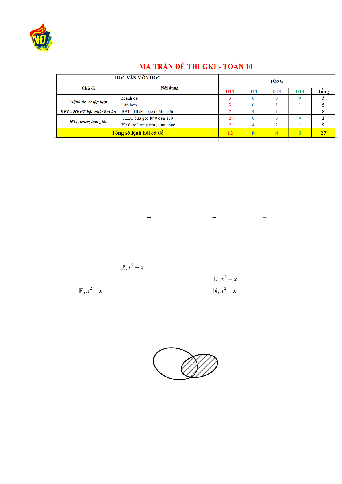 ĐỀ KIỂM TRA GIỮA KỲ I – MÔN TOÁN – LỚP 10