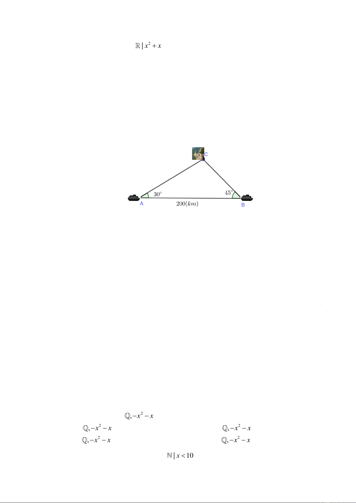 Câu 3. Hai tàu du lịch xuất phát từ hai thành phố cảng A và B cách nhau 200 (km) đến đảo C như hình minh họa. Biết CAB = 30 ; CBA = 45 .