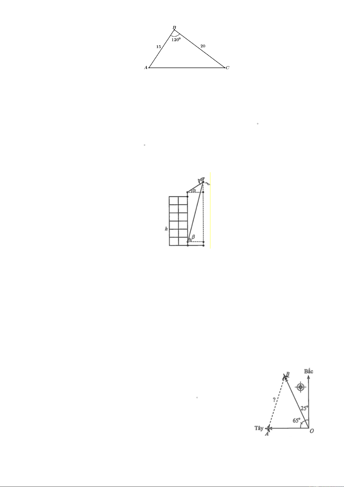 Câu 3. Trên nóc một tòa nhà có một cột ăng-ten cao 5 m . Từ vị trí quan sát A cao 7 m so với mặt đất,