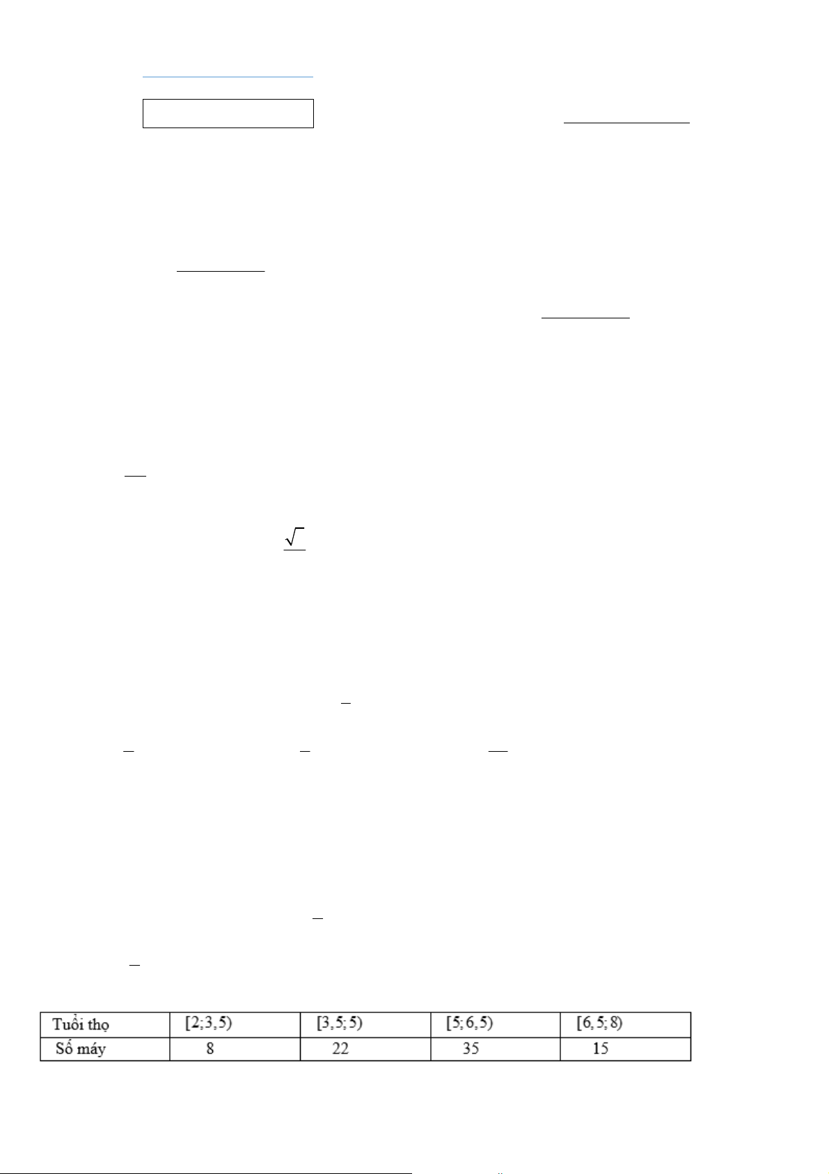Câu 10. Cho mẫu số liệu ghép nhóm về tuổi thọ (đơn vị tính là năm) của một loại máy lọc nước mới như sau.