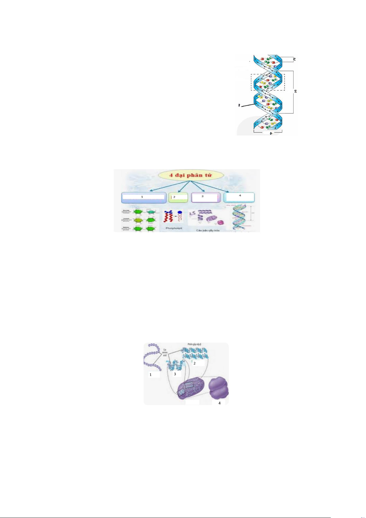 Câu 1. Hình sau mô tả về cấu trúc của 4 loại phân tử hữu cơ trong tế bào. Cấu trúc số mấy là thành