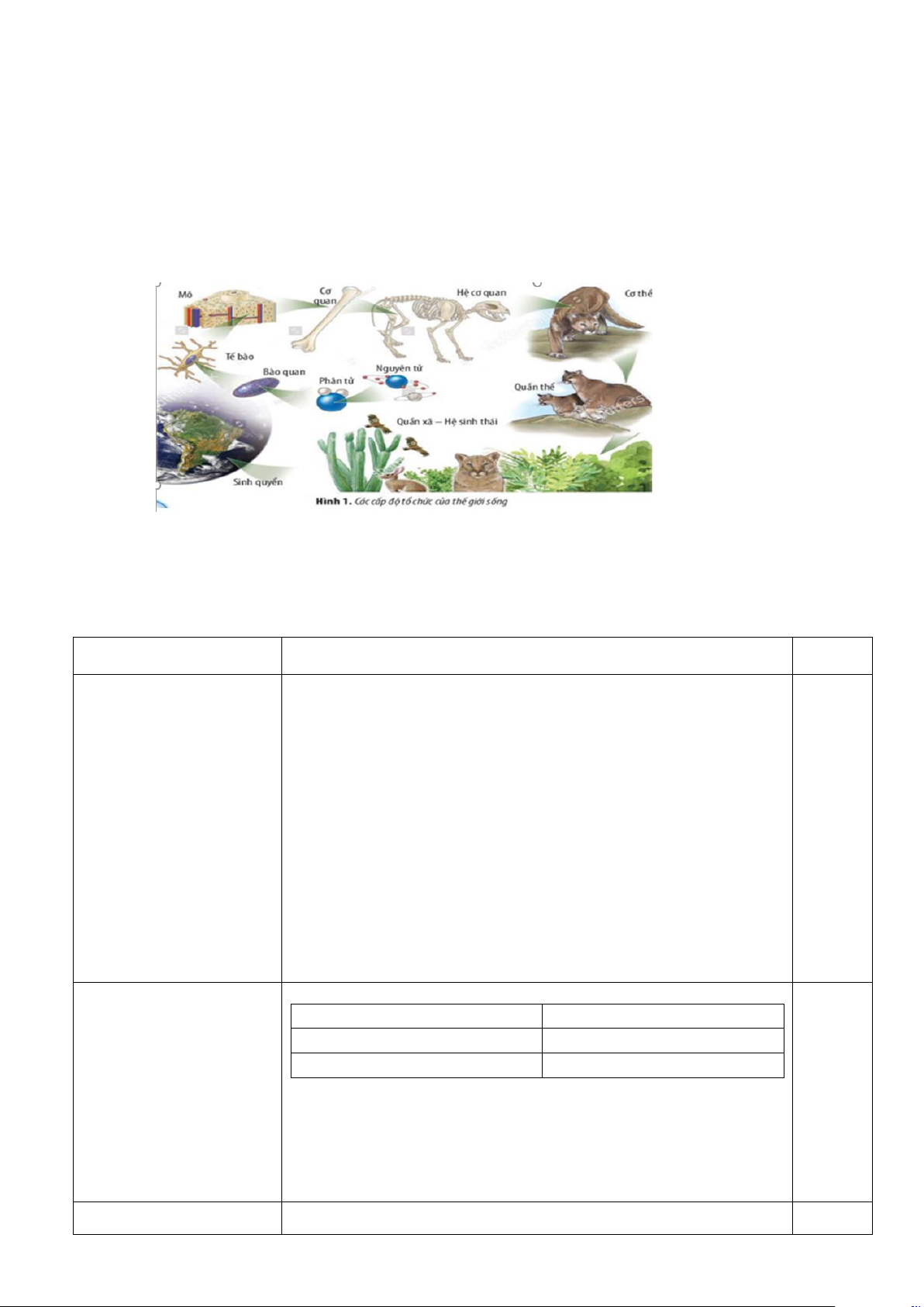 giữa các cấp độ tổ chức sống. Vận dụng: 1