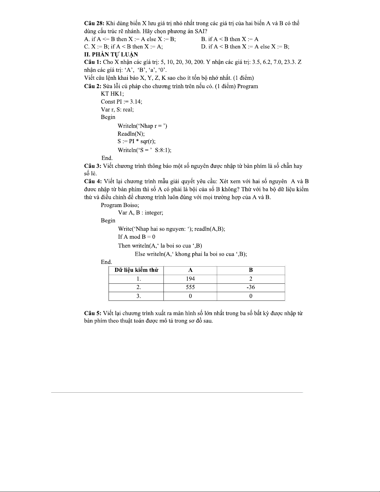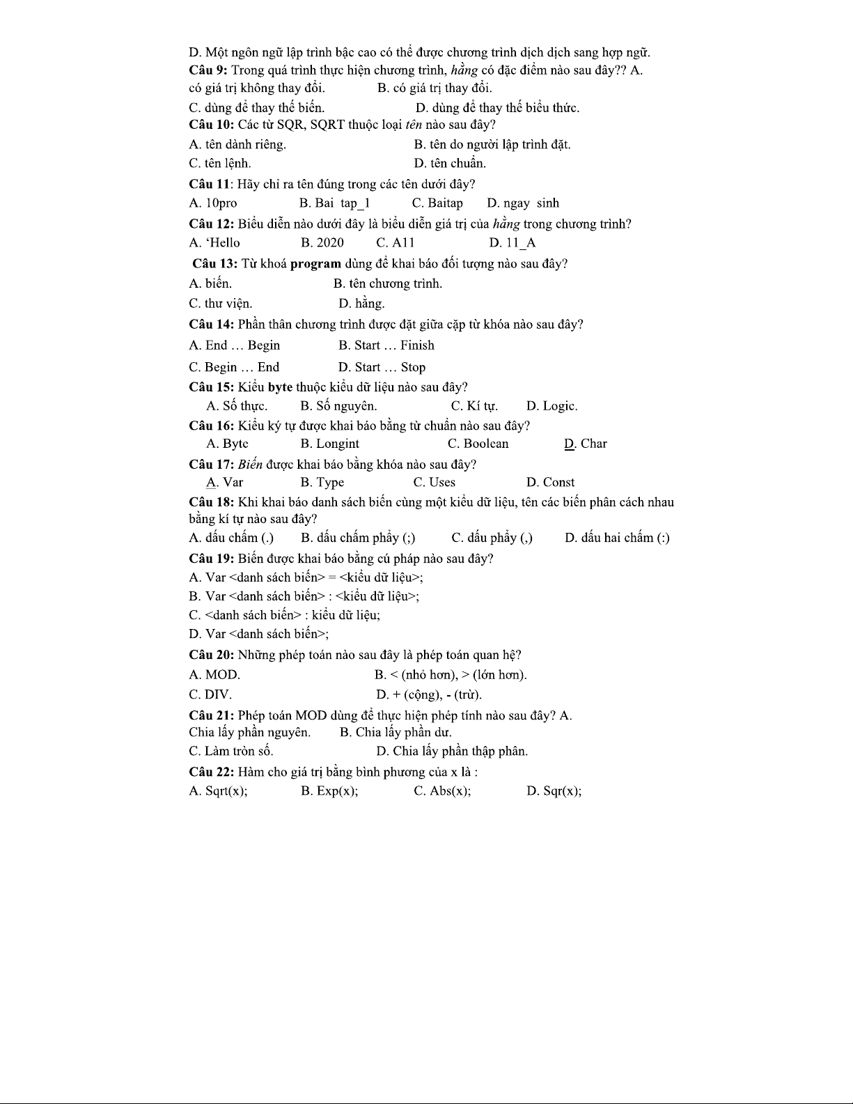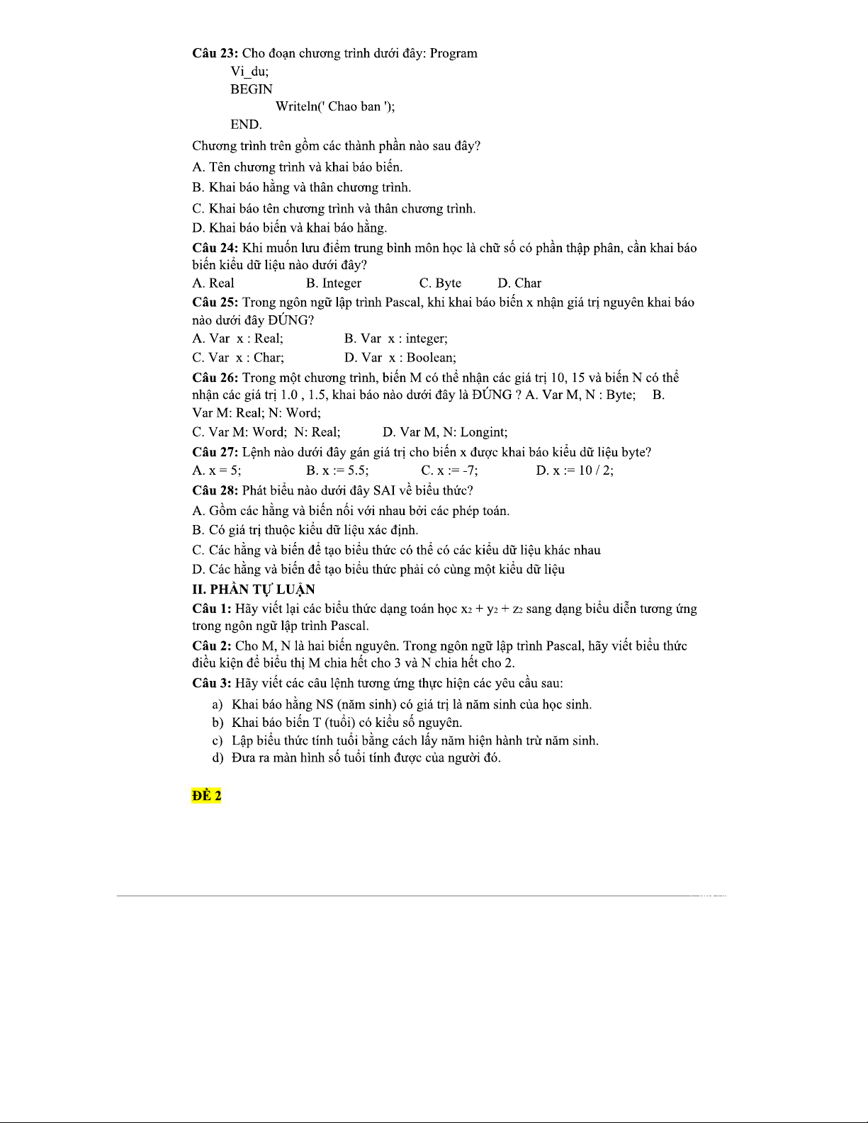 Đề ôn tập giữa kỳ 1 - Tin học 11 - Năm học 2022 - Tài liệu ôn thi