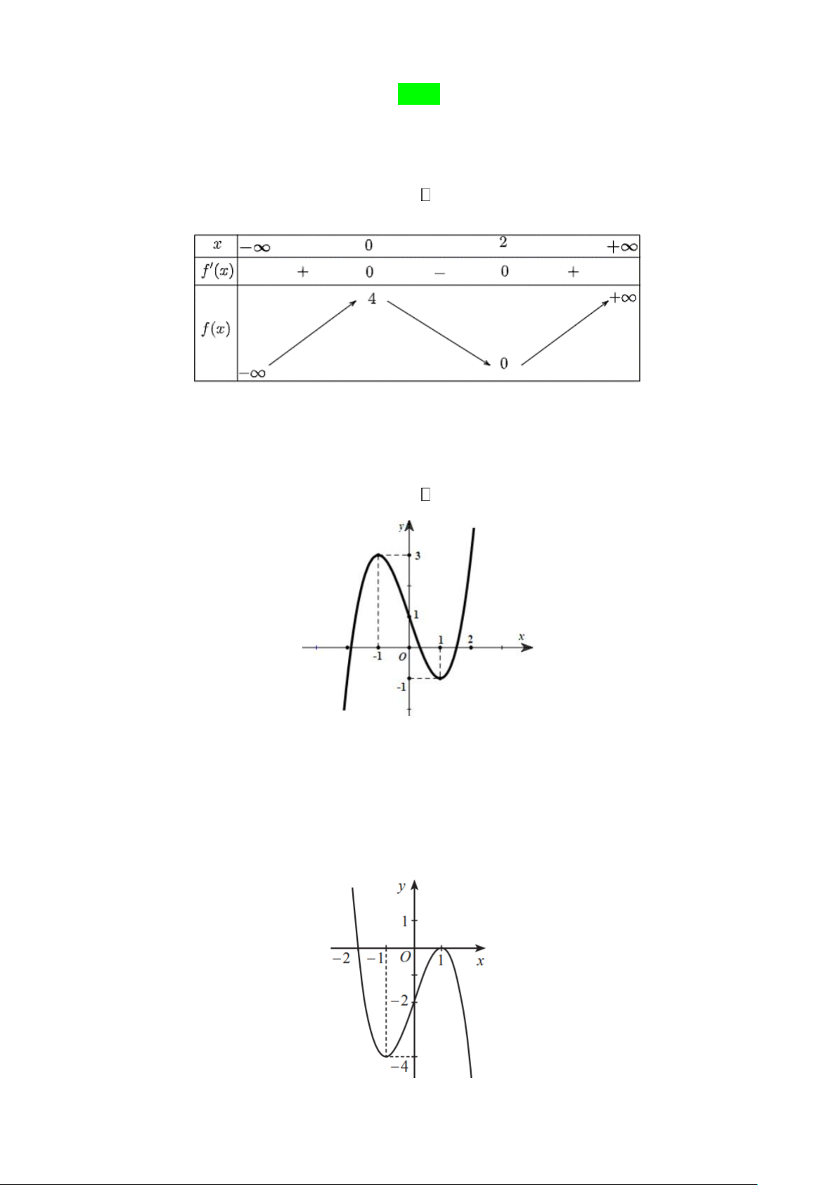 Câu 1. Cho hàm số y = f (x) liên tục trên và có bảng biến thiên như sau: