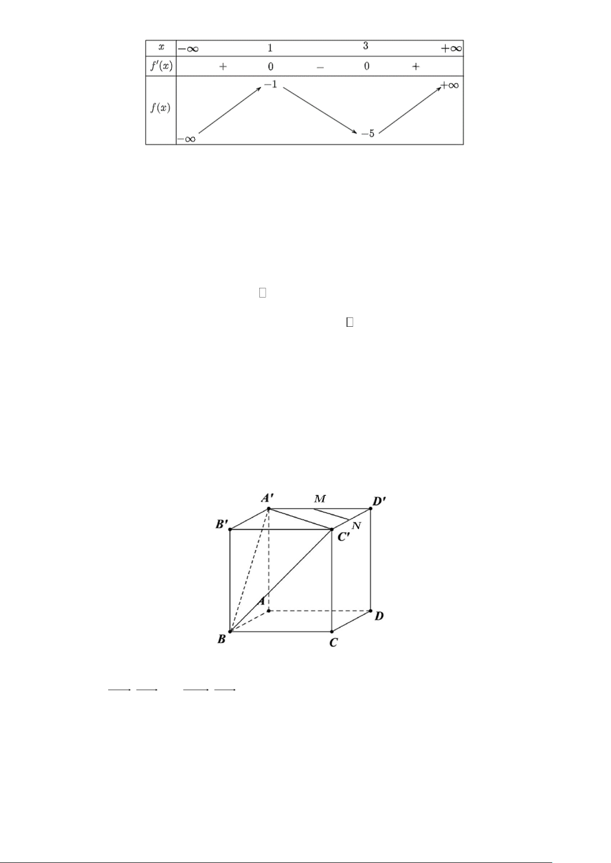 Câu 1. Cho hàm số y = f ( x) xác định trên và có bảng biến thiên như sau: