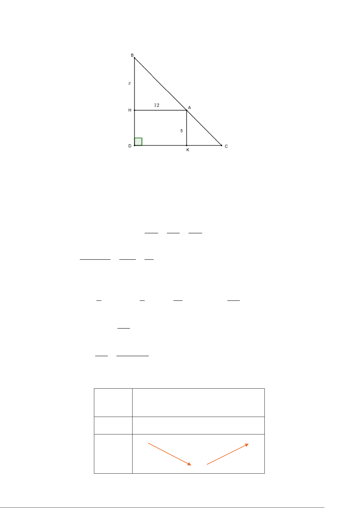 Ta có AH // BC, AK // DH nên = = . HD AC KC HD DK 512 60 Suy ra KC = = = (m). BH x x