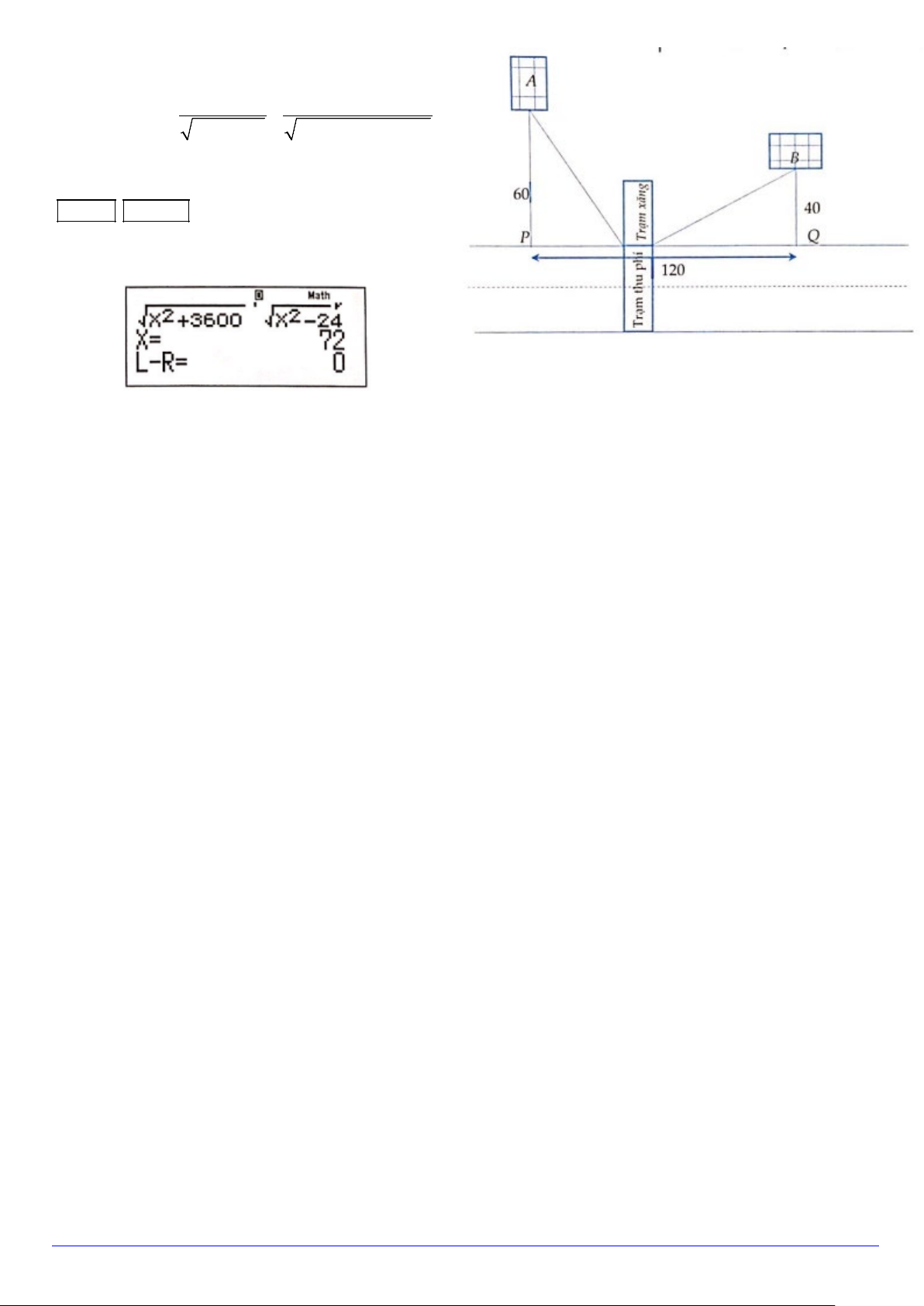 Theo định lý Pytago ta có 2 2 AC = + x BC = ( − x)2 2 2 60 ; 120