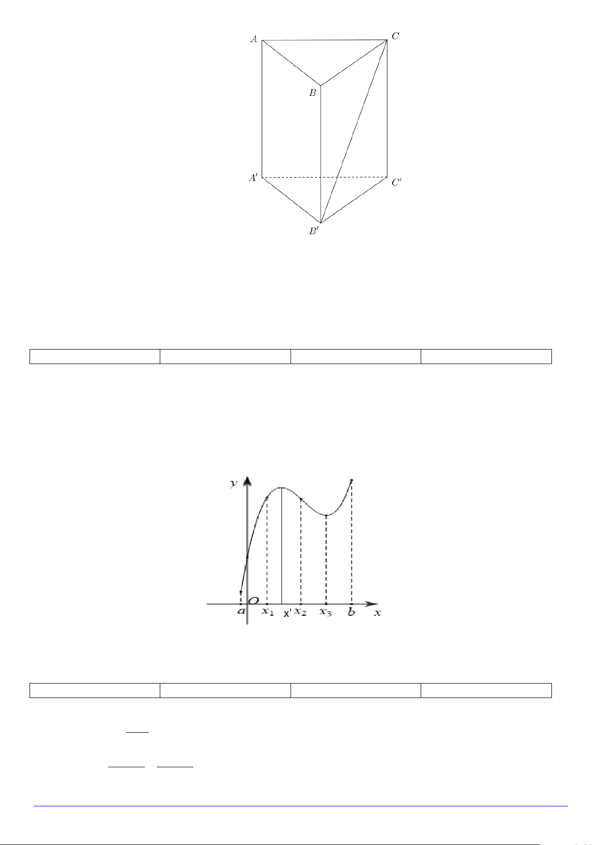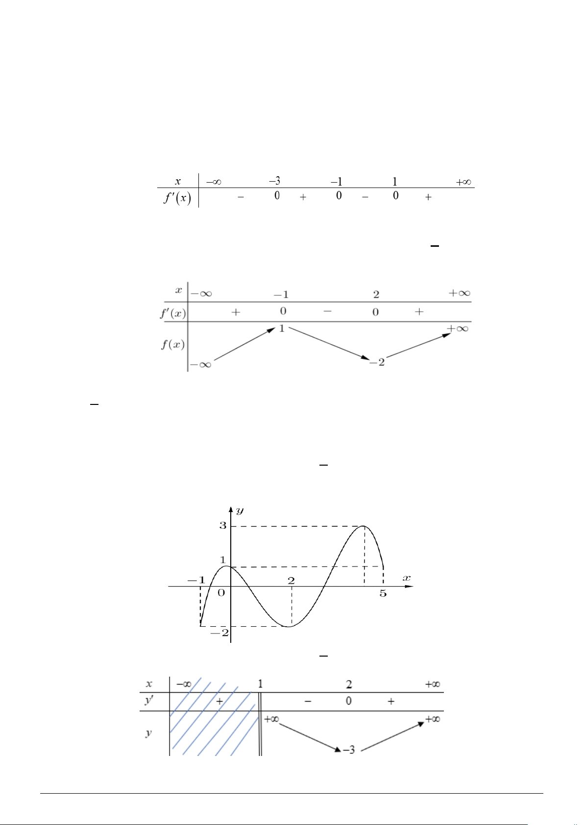 Câu 1. Cho hàm số y = f (x) , bảng xét dấu của f ′(x) như sau: