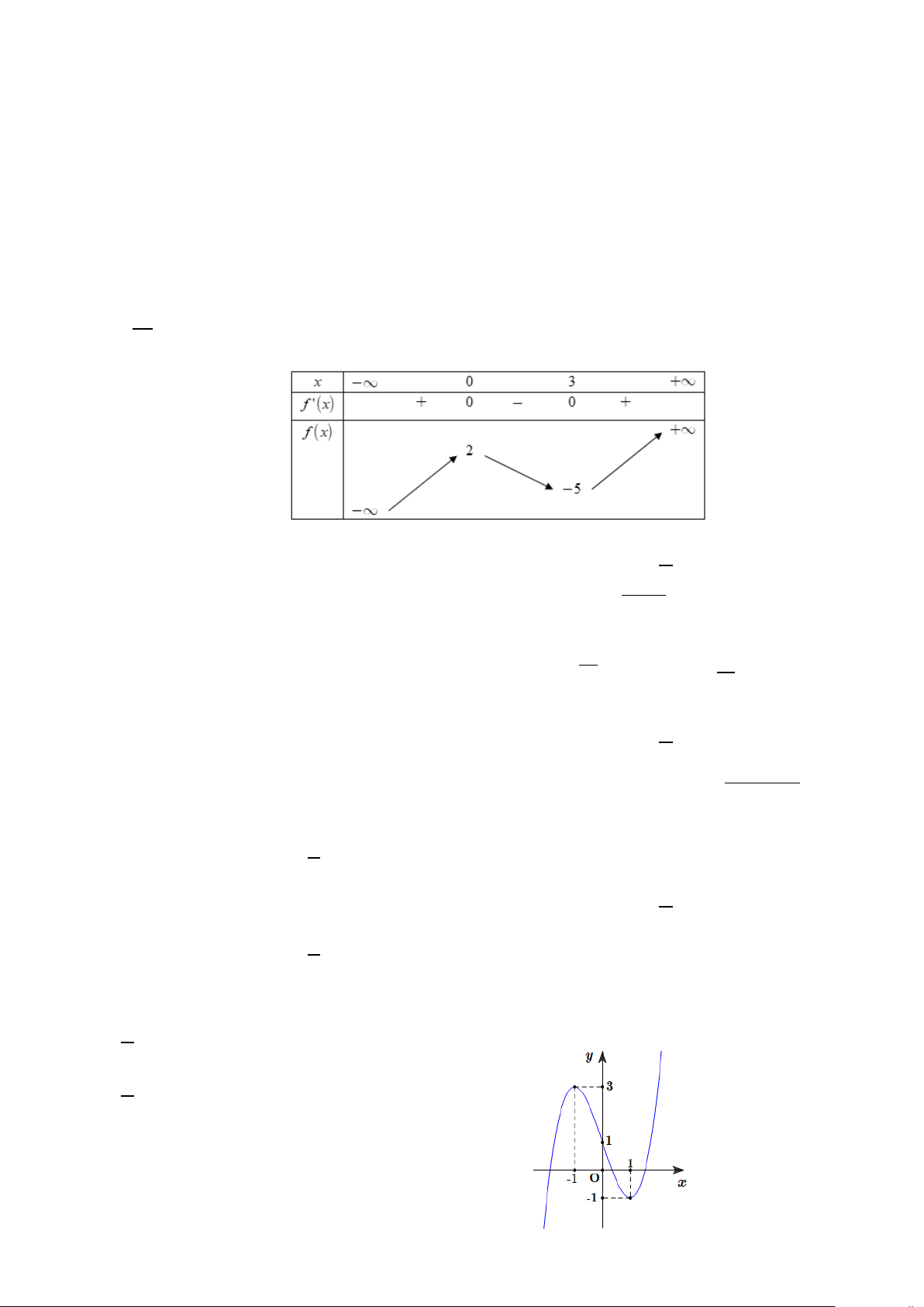 Câu 1. Cho hàm số 3