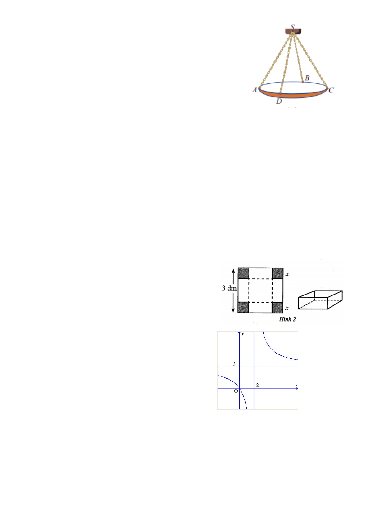 Câu 4. Một chiếu đèn chùm treo có khối lượng m = 5 kg được thiết kế với đĩa đèn được giữ bởi bốn đoạn xích ,