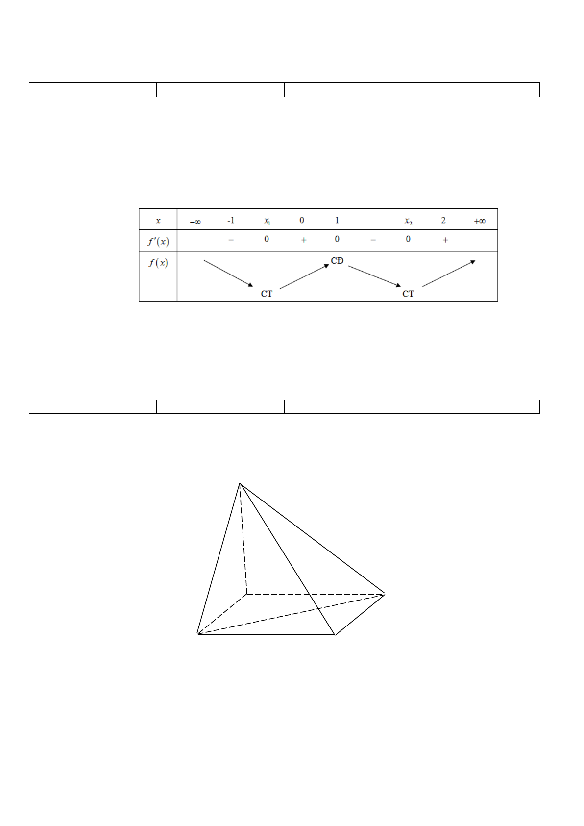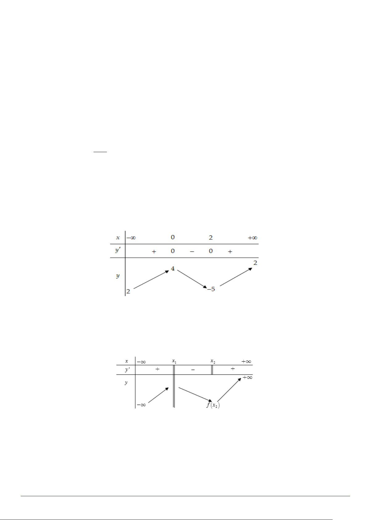 Câu 2. Cho hàm số y = f (x) có bảng biến thiên như sau: