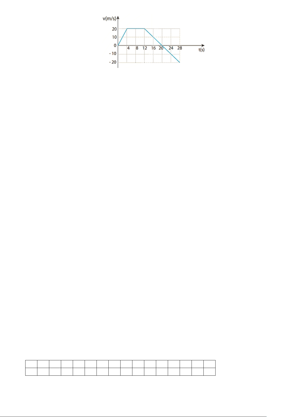 Câu 1: Đồ thị bên dưới mô tả sự thay đổi vận tốc theo thời gian trong chuyển động của một vật