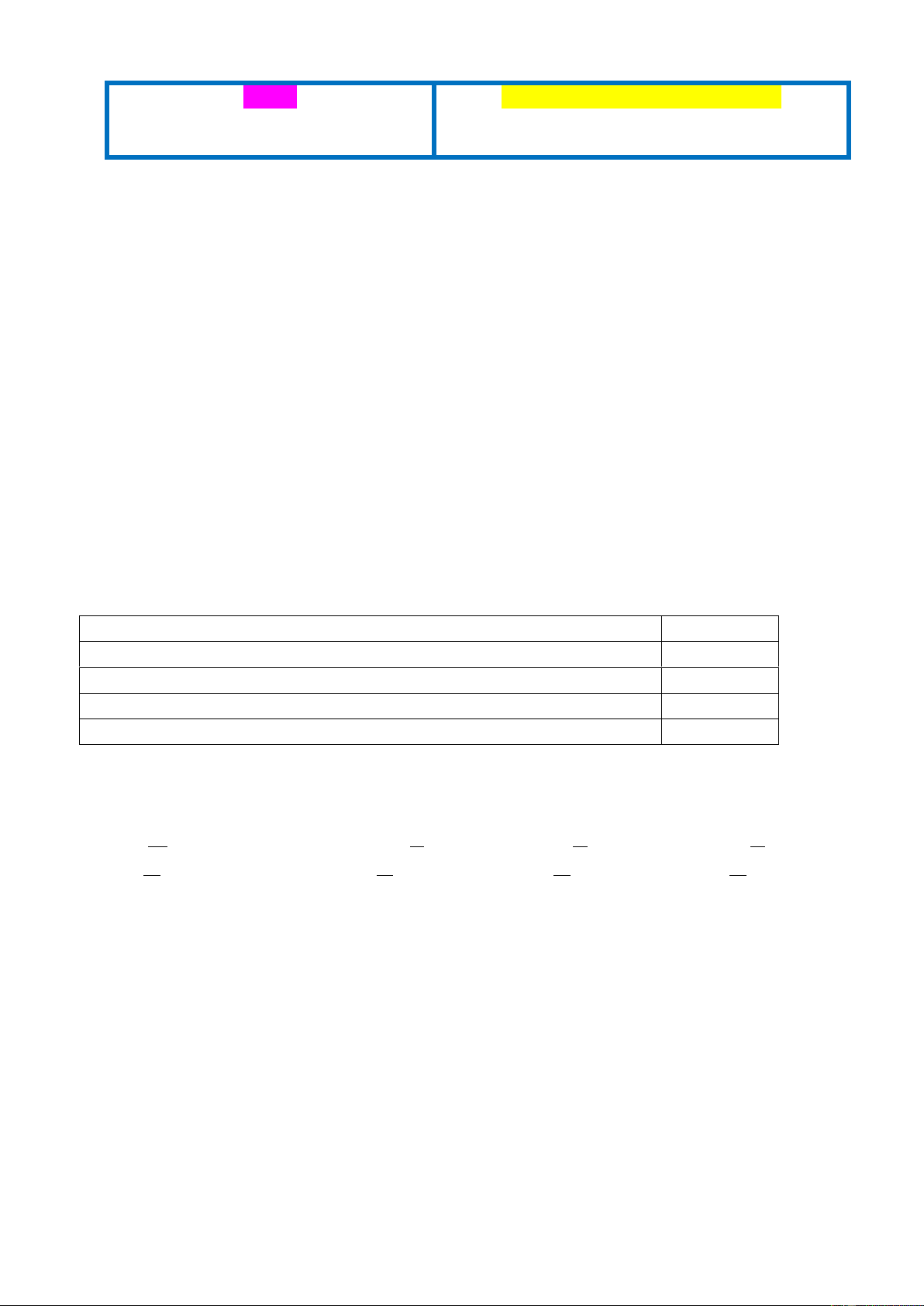 ----------The end ----------- ĐÁP ÁN Câu Ý Đáp án Điểm 1 C 2,5 I.1 2 B 2,5 3 A 2,5 (10pts) 4 B 2,5 5 T 2,5 I.2 6 F 2,5 7 T 2,5 (10pts) 8 F 2,5 II 9 A 2,5 Trang 4 (5pts) 10 B 2,5 11 B 2,5 12 B 2,5 III 13 C 2,5 (30pts) 14 A 2,5 15 C 2,5 16 C 2,5 17 B 2,5 18 C 2,5 19 B 2,5 20 C 2,5 21 A 2,5 22 B 2,5 23 C 2,5 IV.1 24 B 2,5 25 A 2,5 (12.5pts) 26 D 2,5 27 C 2,5 28 B 2,5 IV.2 29 C 2,5 30 C 2,5 (12.5pts) 31 D 2,5 32 A 2,5 V.1 33 C 2,5 34 D 2,5 (5pts) Task fulfillment: 5pts