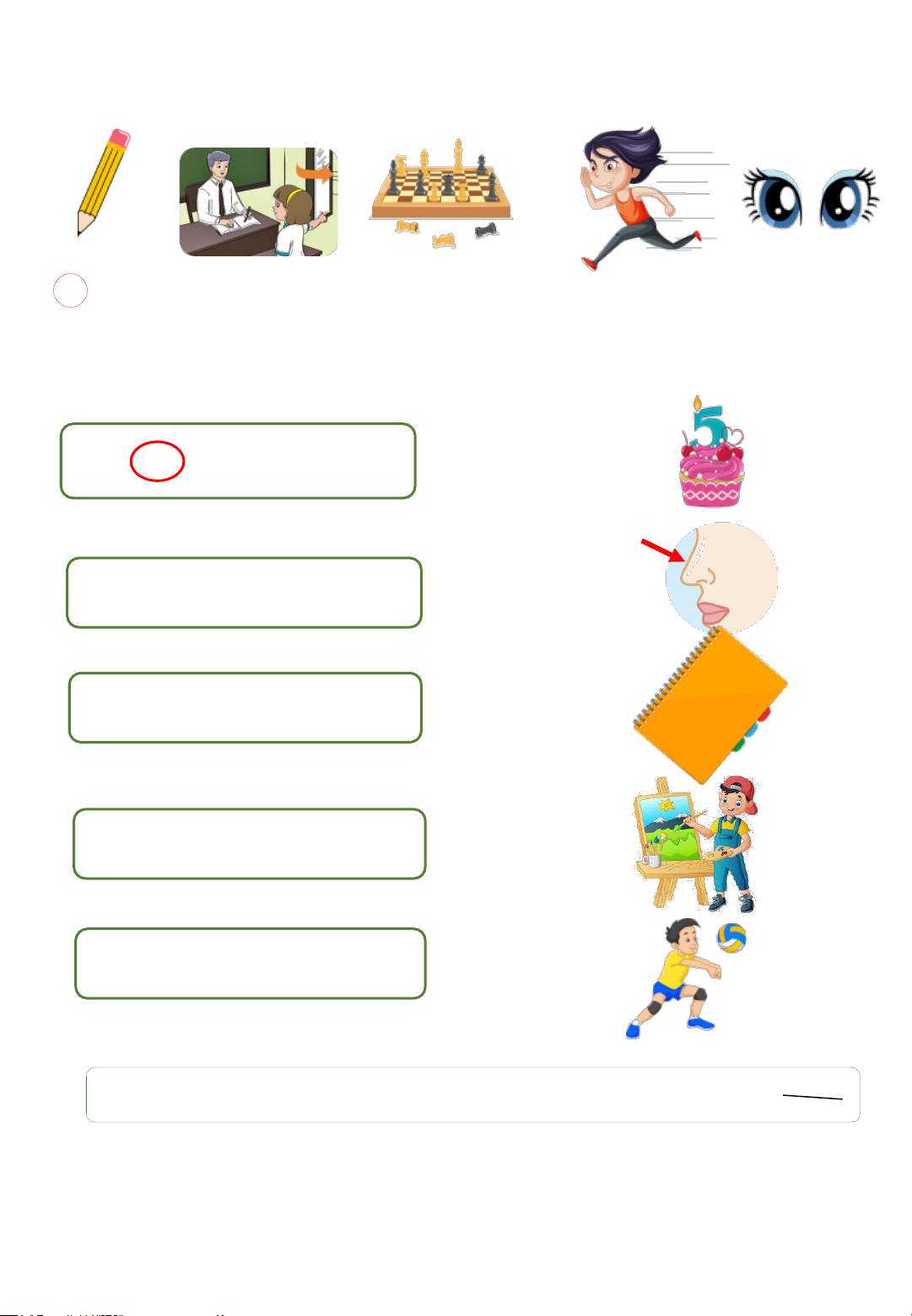 II. Read and choose the correct word 1. nose 2. orange 3. painting 4. volleyball