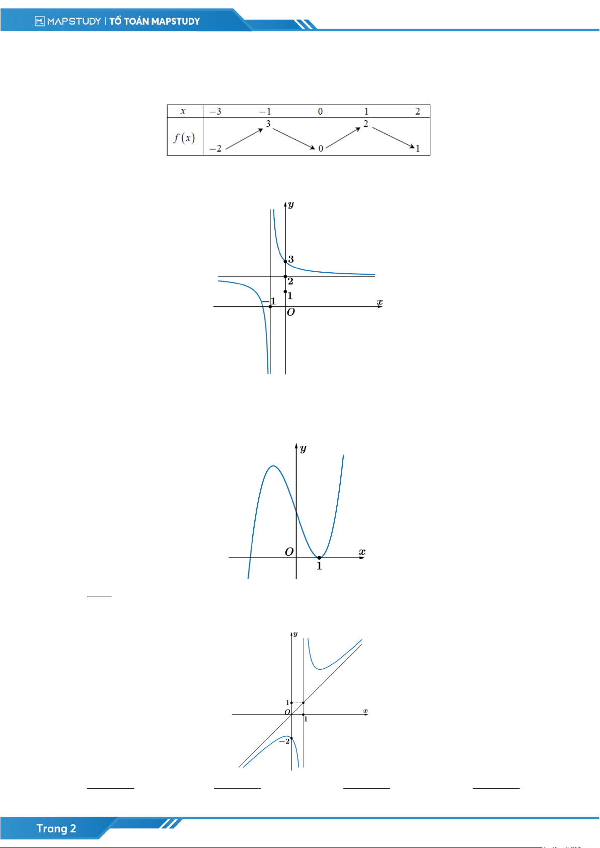 Câu 2: [MAP] Cho đồ thị của hàm y = f (x) có đồ thị như hình vẽ bên dưới. Hàm số đã cho đồng