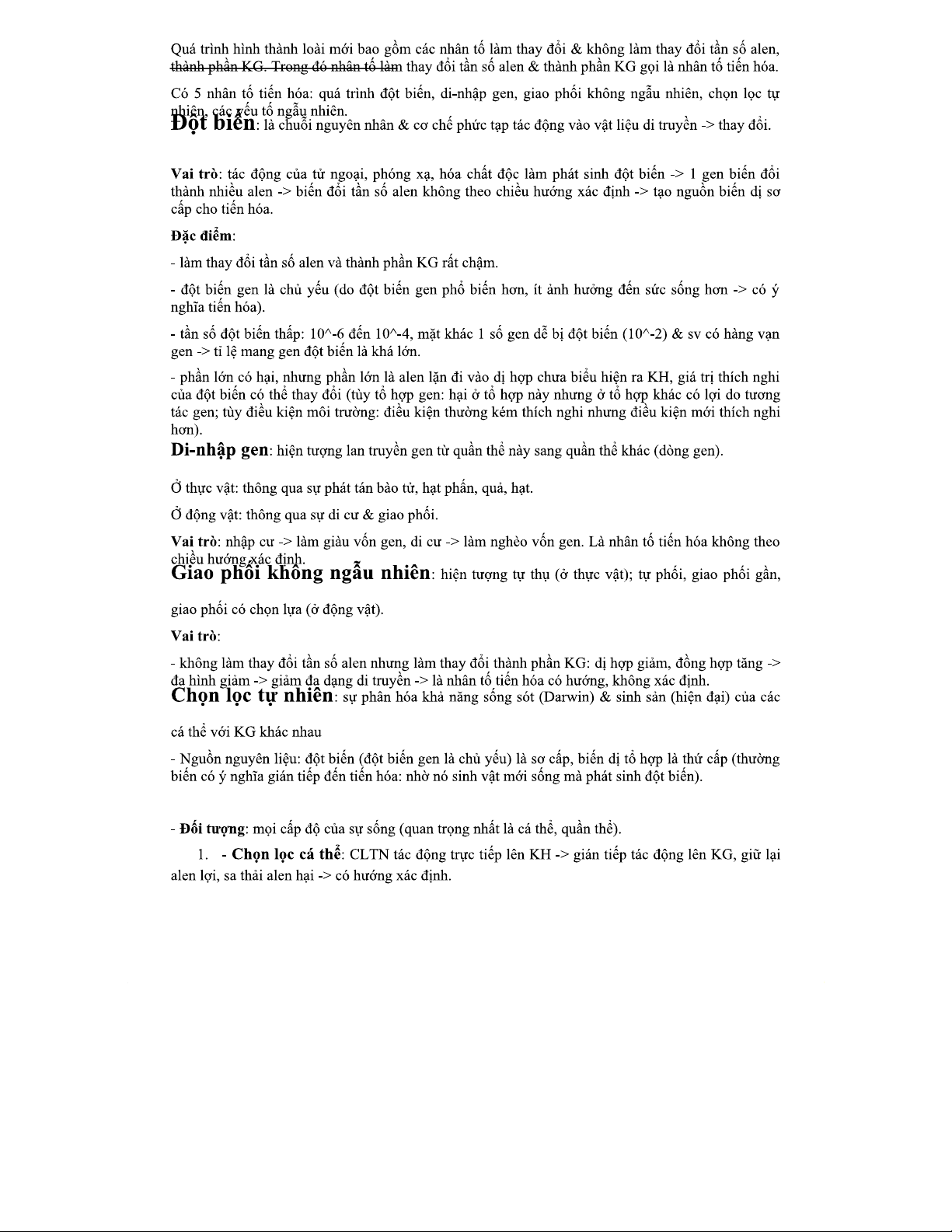 ĐỀ ÔN TẬP KÌ II - CÁC NHÂN TỐ TIẾN HÓA TRONG SINH HỌC